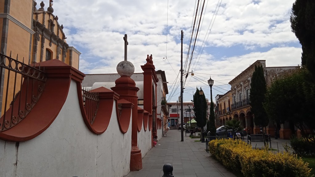 Como se ha mencionado, el centro del poblado es su mejor carta de presentación ante propios y extraños, que bien podría catalogarse como conjunto arquitectónico, debido a la curiosa cantidad de templos que en el mismo cuadro se encuentran, lo mismo que algunas otras edificaciones que parecen remitirnos por ejemplo a los Portales de Toluca. De todo lo anterior, una buena referencia escrita es la proporcionada por Álvarez Noguera, cuya descripción parece seguir siendo acorde a la actualidad a pesar de tener alrededor de cincuenta años de diferencia: