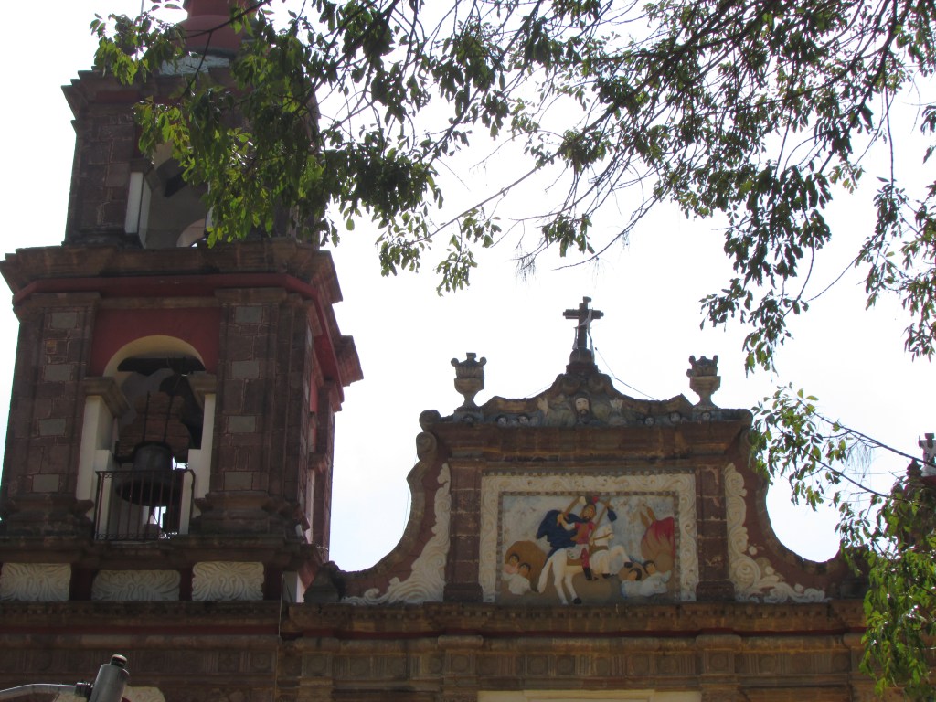 La fachada de la parroquia es un buen ejemplo del sincretismo arquitectónico que se creó en el siglo XVI. En el primer cuerpo de la fachada, la clave del arco es una piedra prehispánica que posiblemente aluda a Quetzalcóatl. Como es sabido, no es el único caso en que las antiguas piedras de los templos paganos sirvieron para construir las iglesias cristianas. Los indígenas seguramente veían con agrado estas incorporaciones arquitectónicas y quien sabe si los mismos evangelizadores las promovieron, para acercar a los indios a los templos donde les enseñarían una nueva religión.