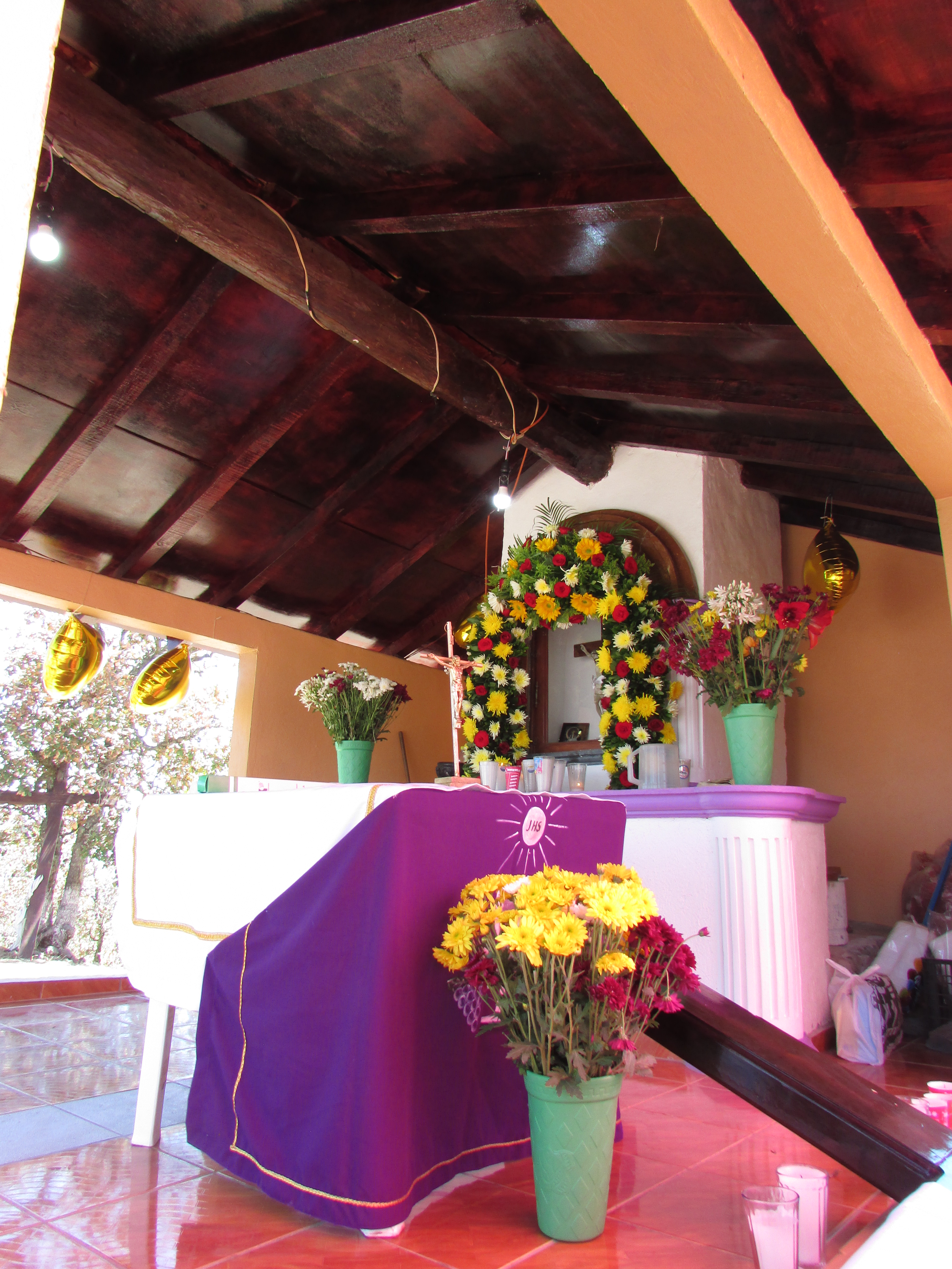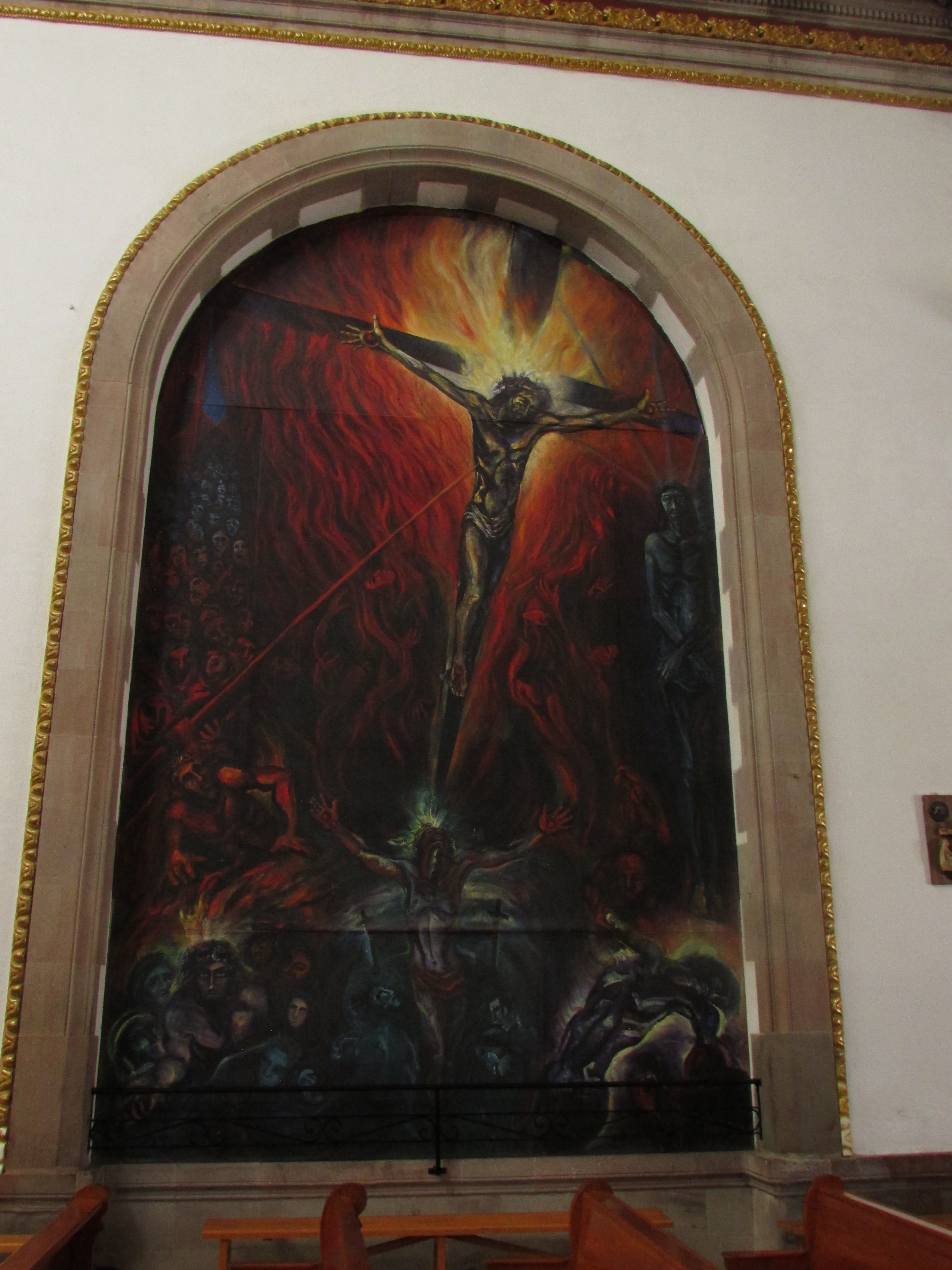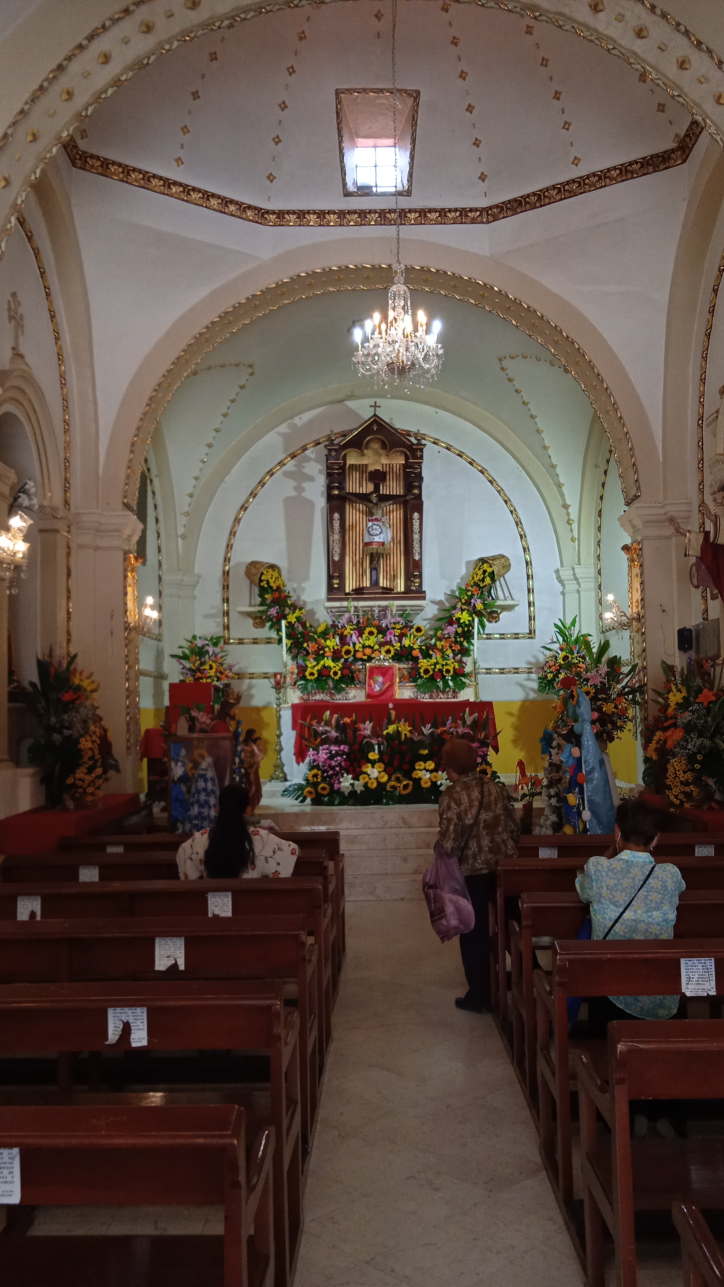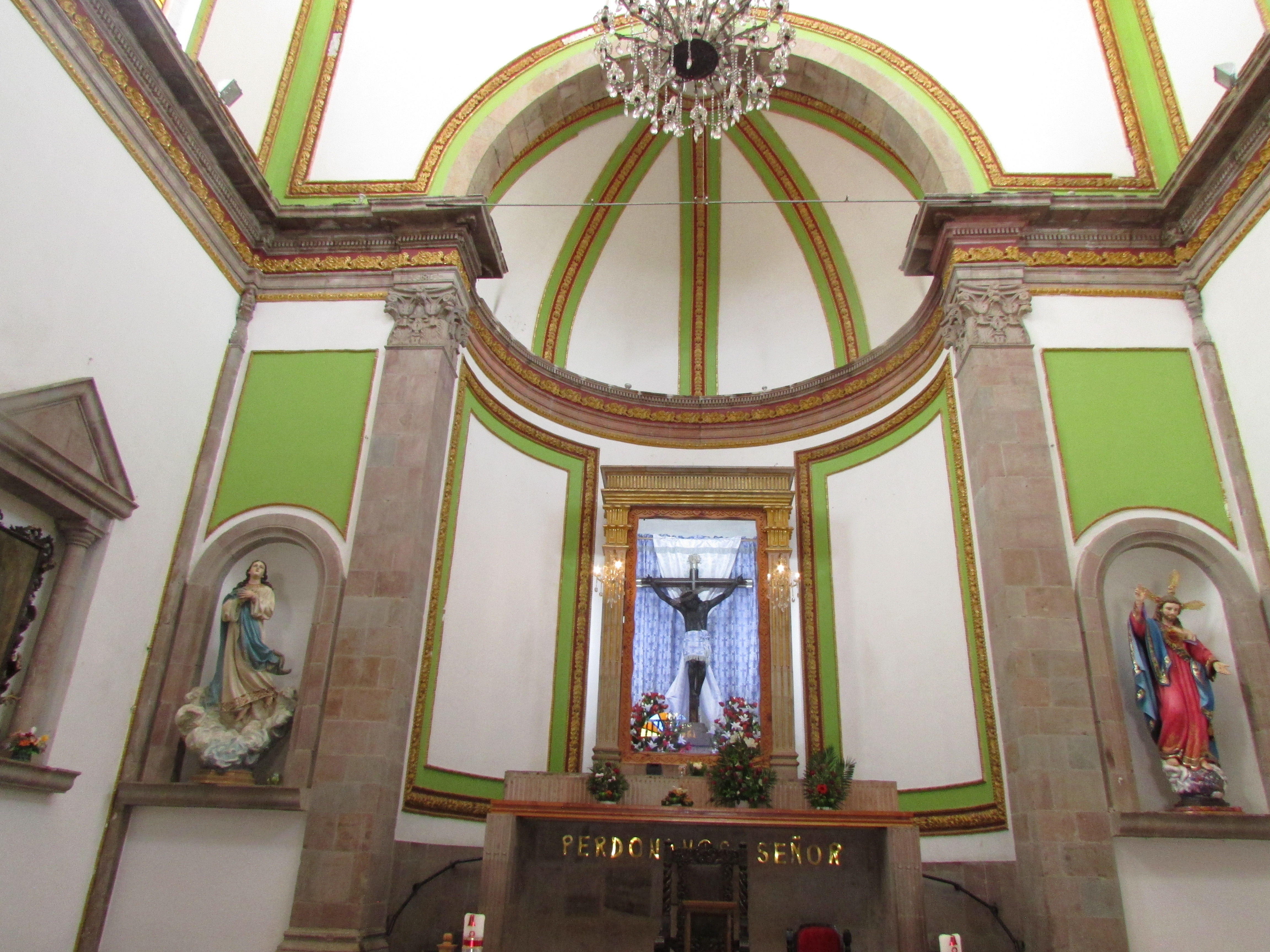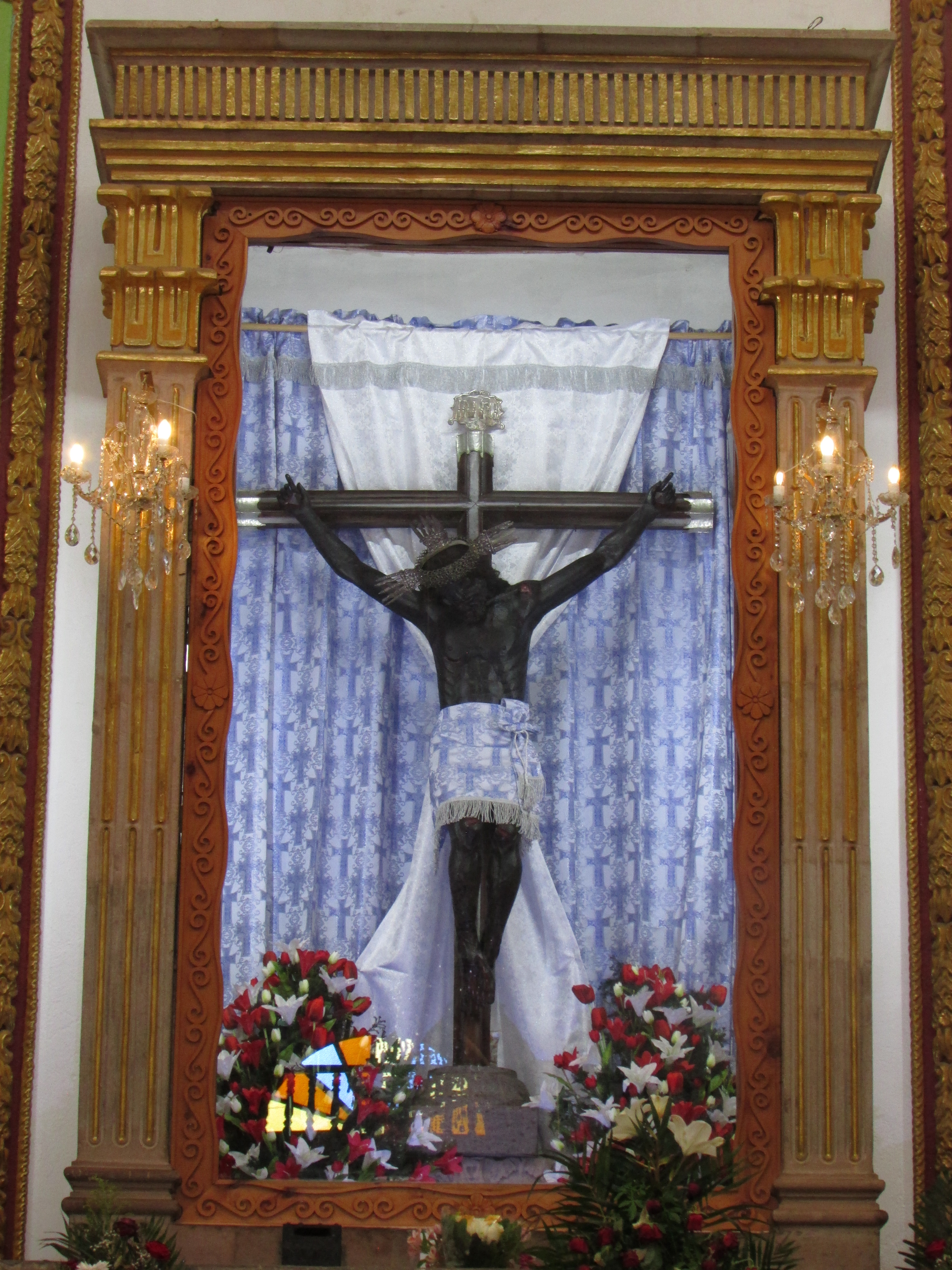 La actual nave principal juega una interesante ilusión. Aparentemente es pequeño, y a la vez no lo es. Resulta ser un templo ciertamente espacioso, lo mismo que alto. Al centro, el Cristo Negro. Curiosamente lo flanquean de un lado la Virgen de Guadalupe y la Asunción, y en el otro extremo, el Sagrado Corazón y un Jesús Nazareno. La historia local habla de su existencia como templo «Del Calvario», donde en algún momento el Cristo empieza a acarrear devoción. Su origen es atribuido a dos historias, un encargo por parte de un hacendado de la región, o bien, un hallazgo milagroso. De cualquier modo, el Cristo con el tiempo es tomado como milagroso. Cierto problemas entre los indígenas locales hacen que los del pueblo de San Gaspar incendien la capilla donde se encontraba. La imagen sobrevive al incendio, pero desde entonces se torna de color negro.