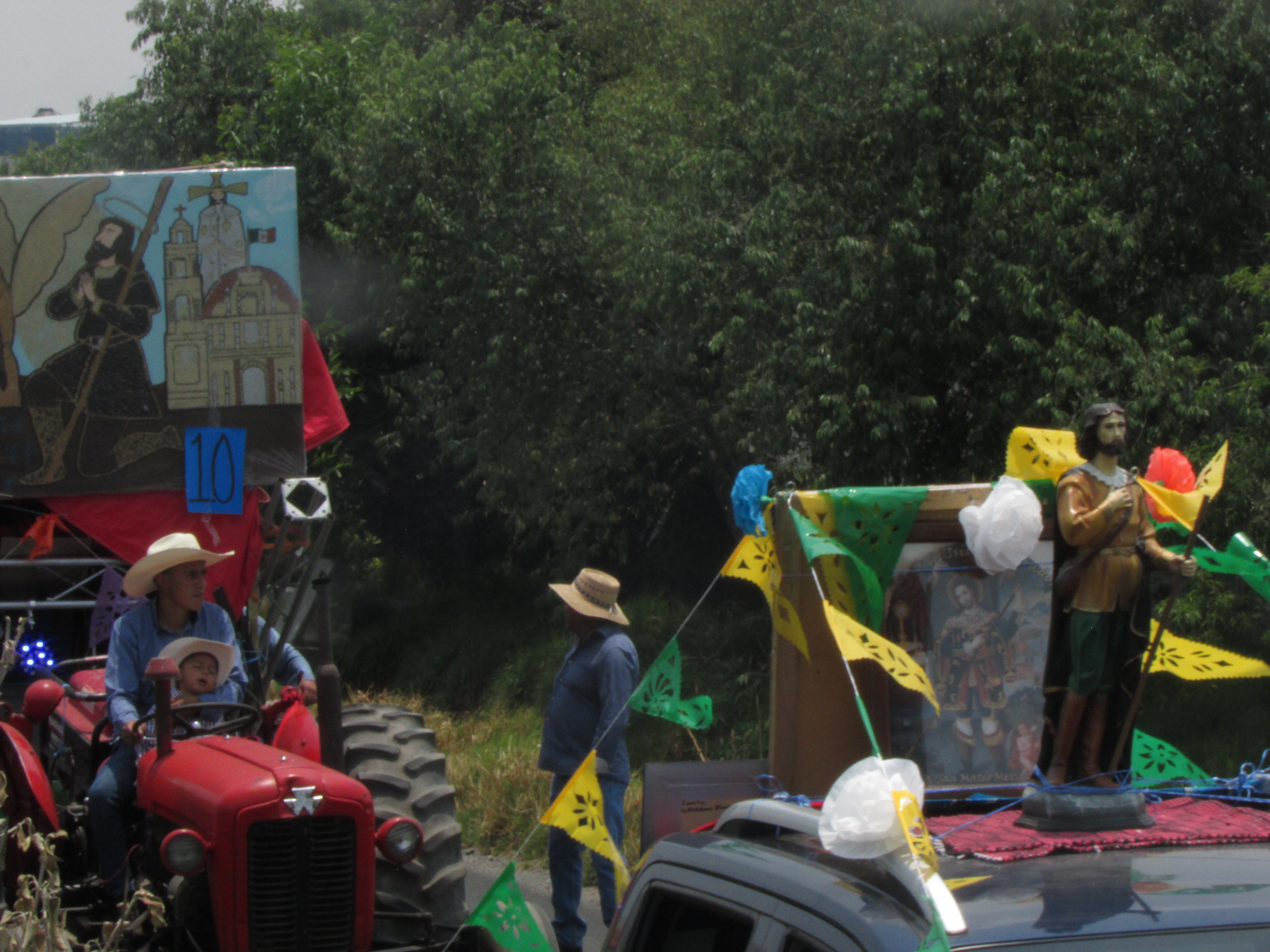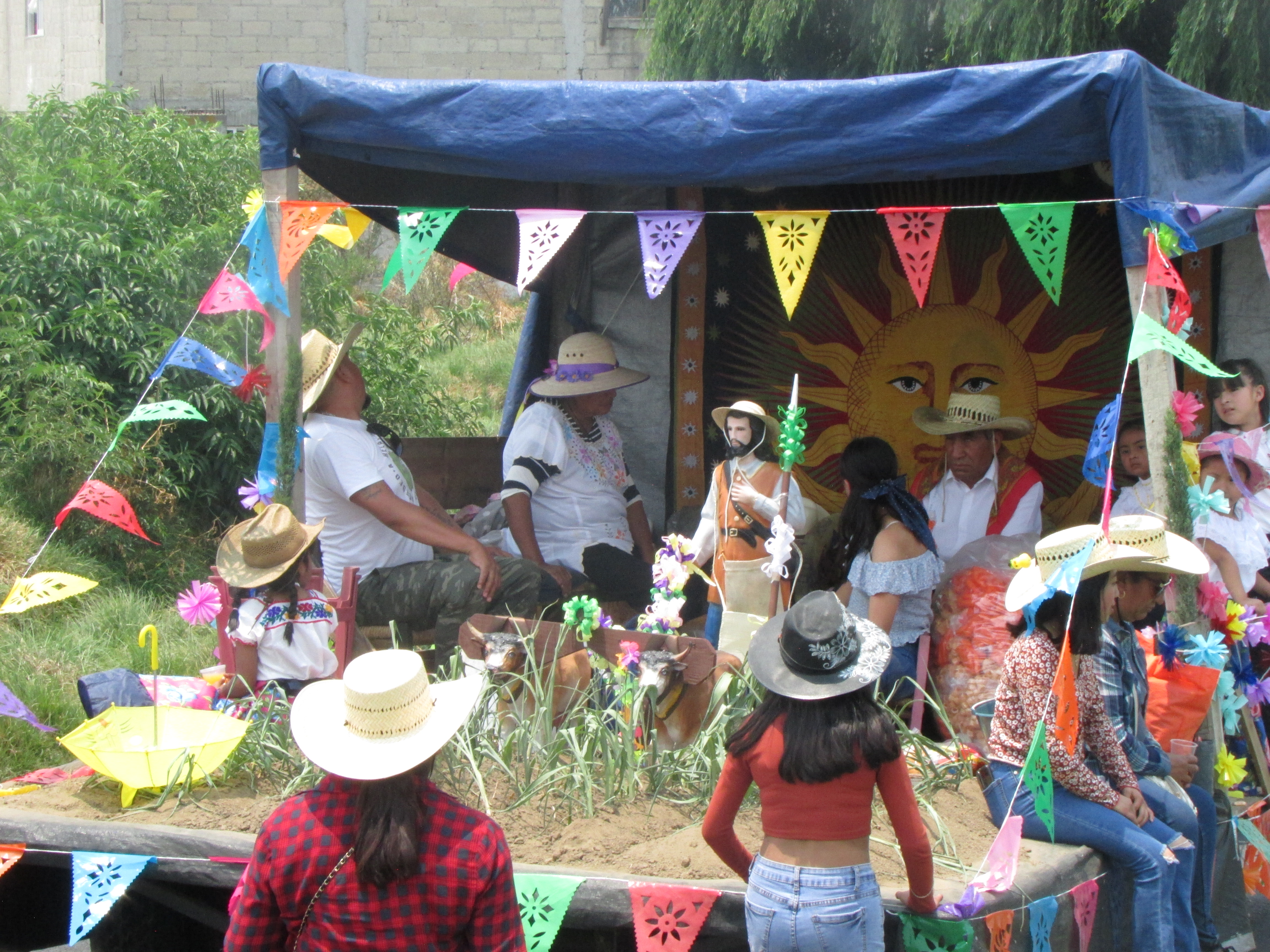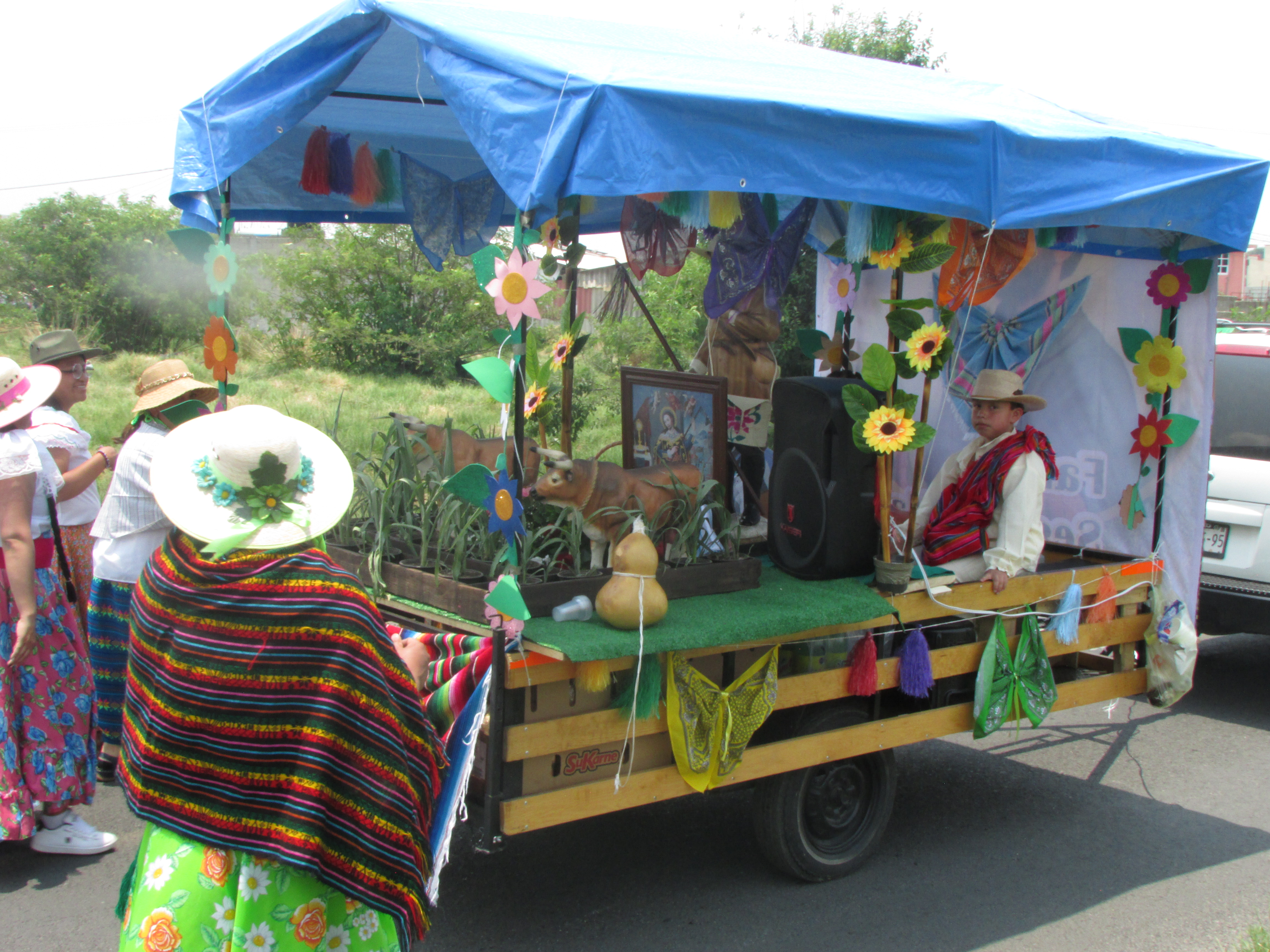 Así mismo, otro elemento importante son los carros adornados con la imagen del santo, así como escenificaciones que simulan los campos de siembra, sin pasar por alto los cuadros que reproducen a San Isidro y otras escenas con semillas, que dan un toque singular a esta tradición en Mexicaltzingo, todo ello ambientado por los diferentes grupos de jóvenes que bailan durante el recorrido, dando motivo de regocijo a los presentes.