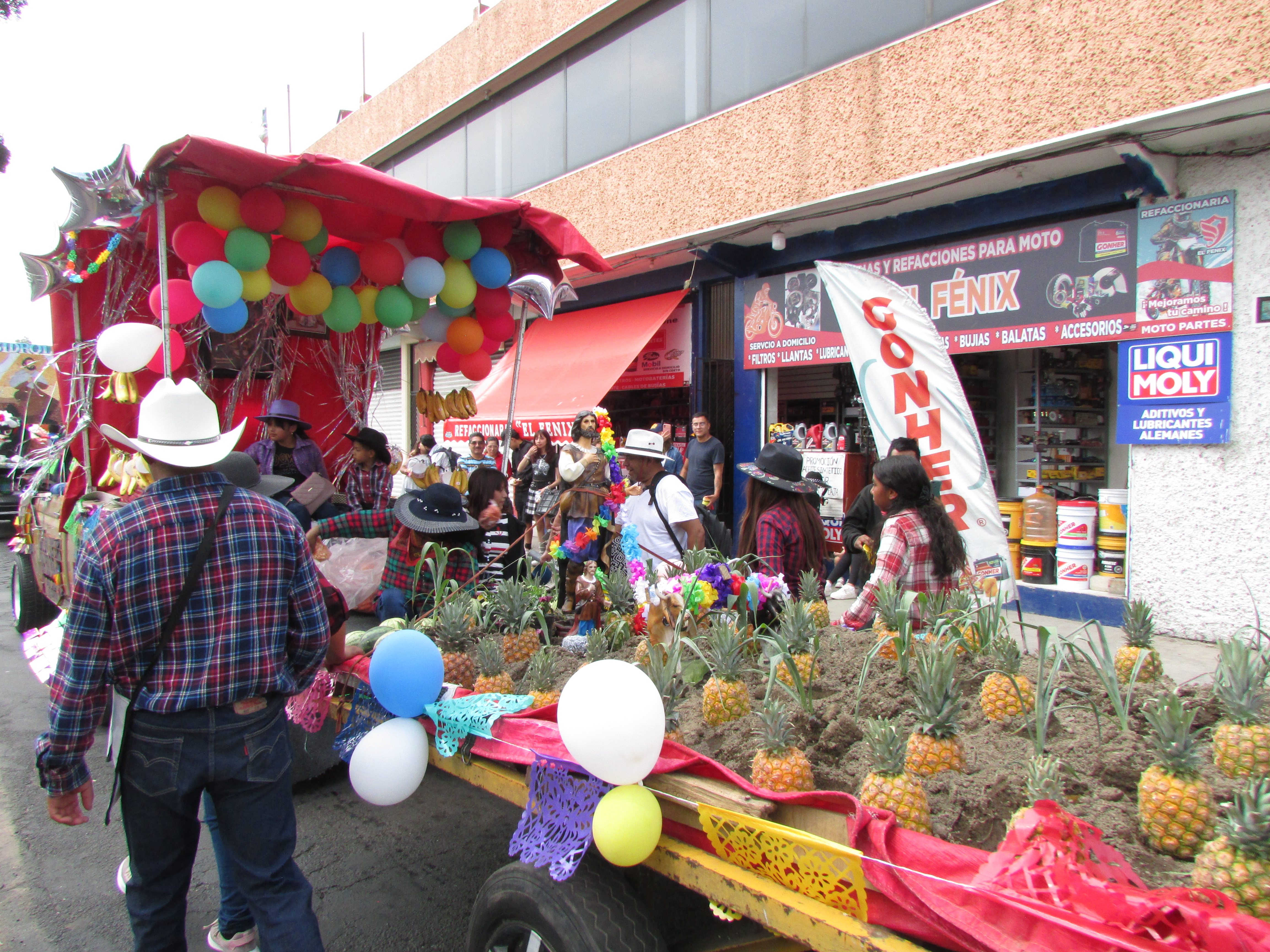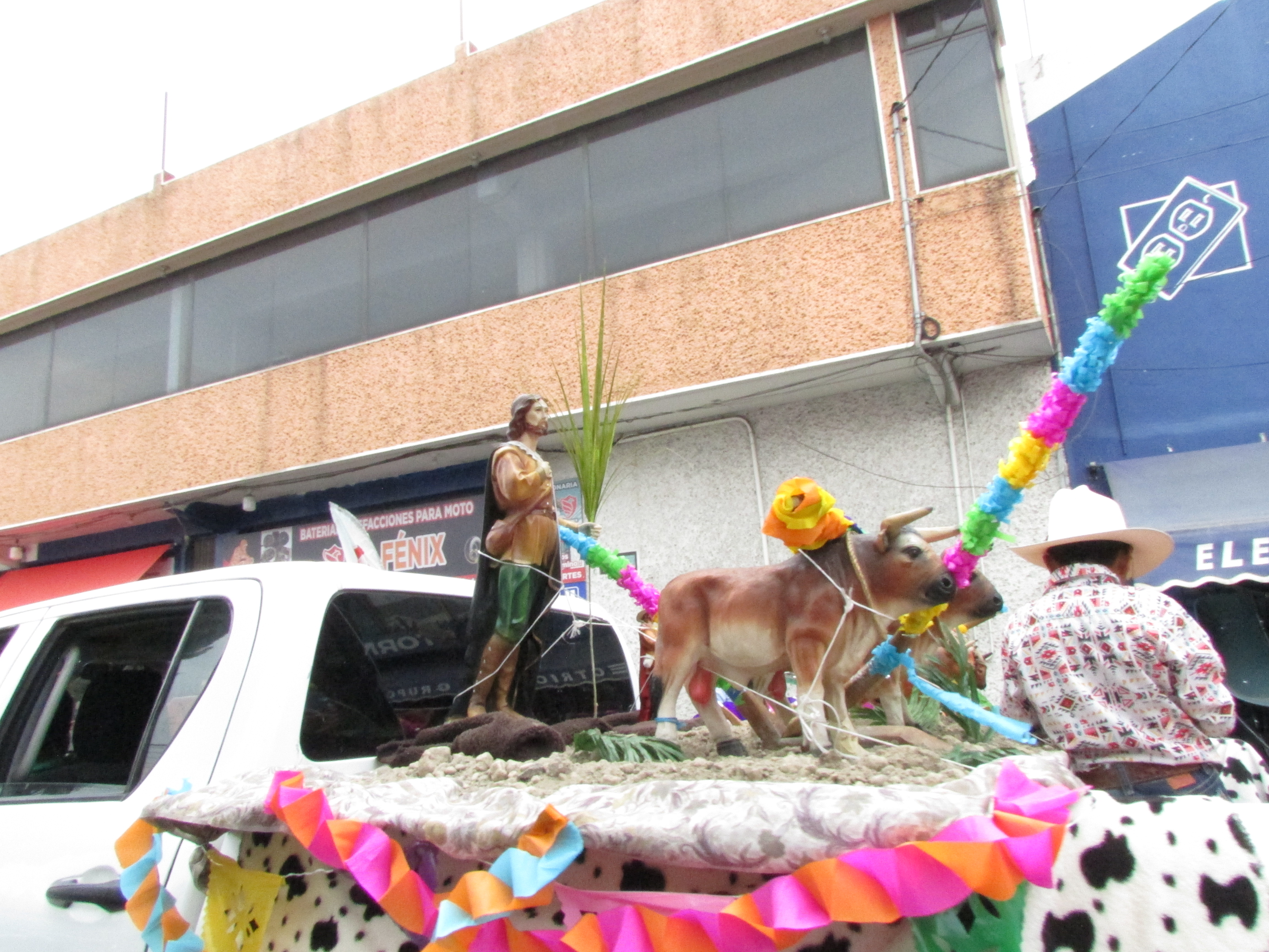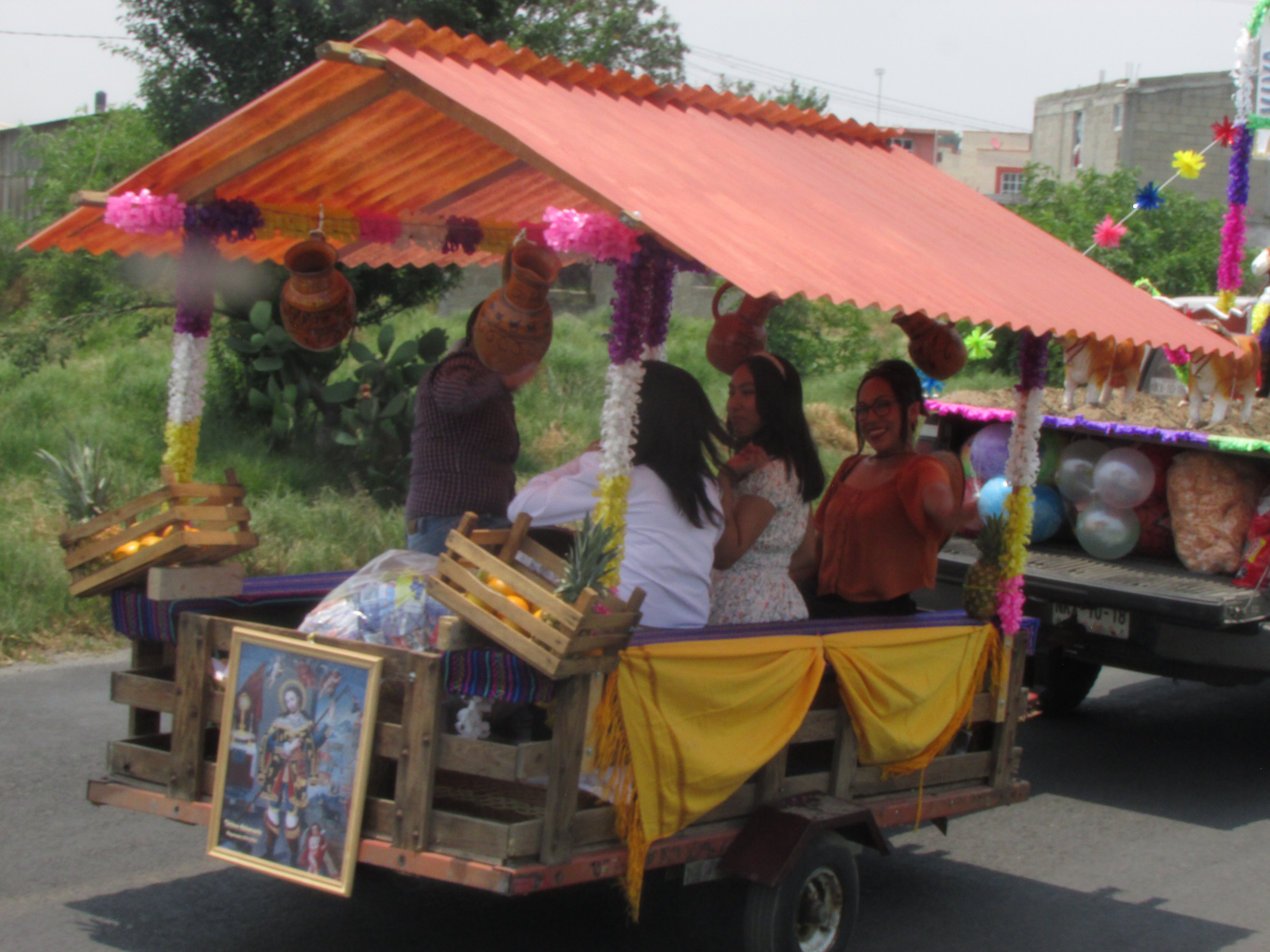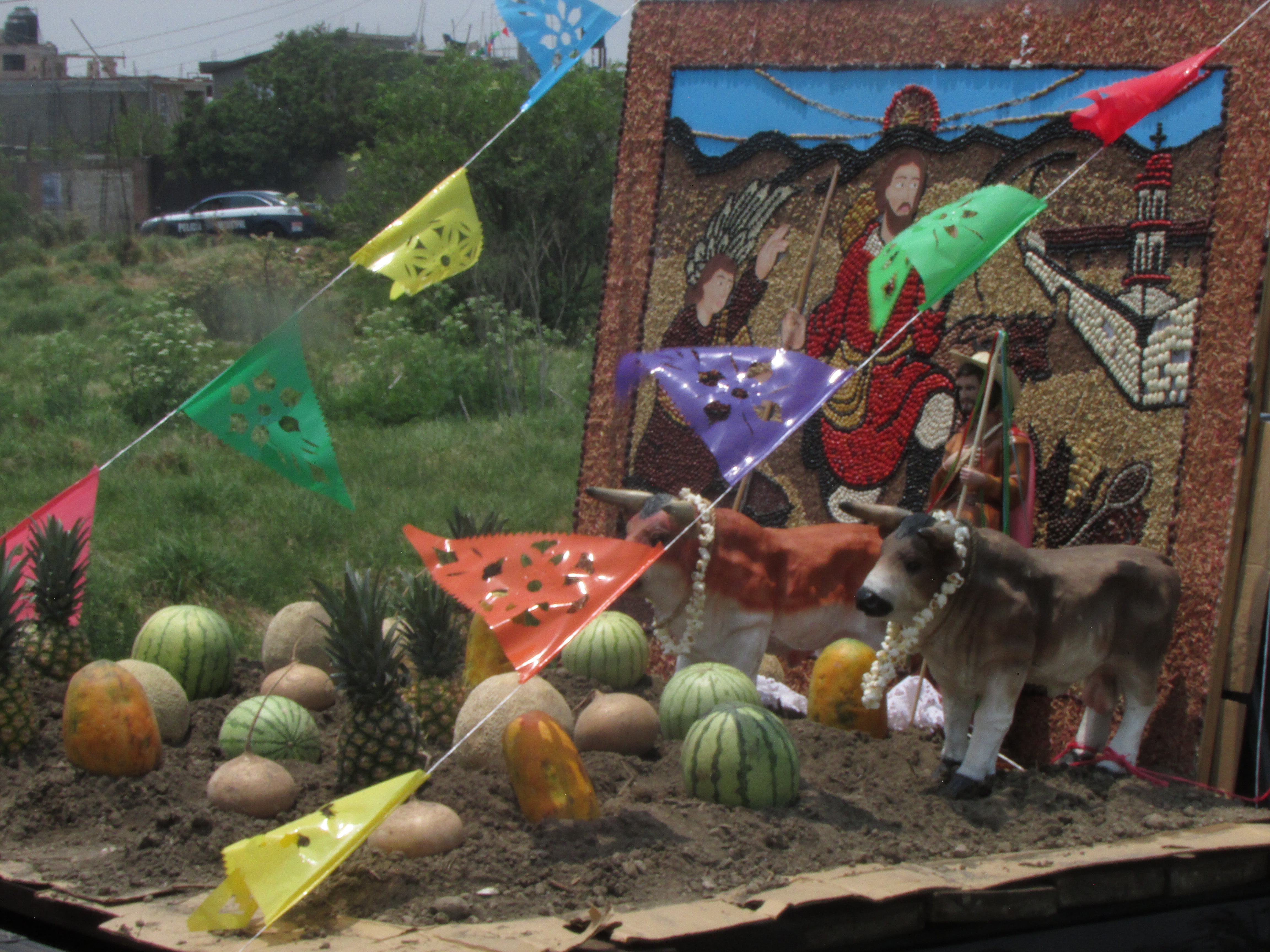 Así mismo, otro elemento importante son los carros adornados con la imagen del santo, así como escenificaciones que simulan los campos de siembra, sin pasar por alto los cuadros que reproducen a San Isidro y otras escenas con semillas, que dan un toque singular a esta tradición en Mexicaltzingo, todo ello ambientado por los diferentes grupos de jóvenes que bailan durante el recorrido, dando motivo de regocijo a los presentes.