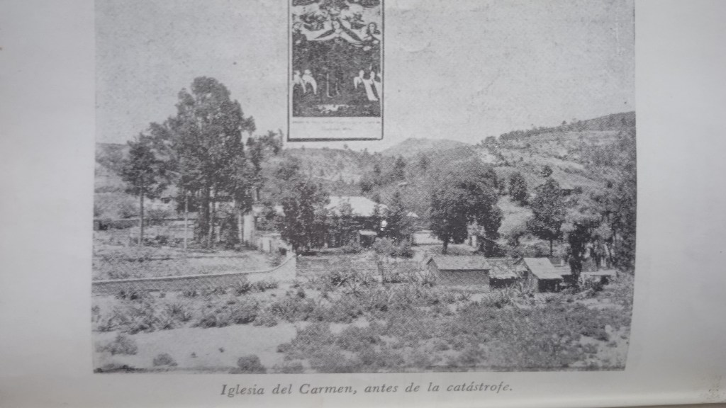 Transcurrida la labor de atender a quienes todo lo perdieron, de sepultar a los muertos, y de otras cuestiones propias ante la tragedia, se procedió a buscar también de entre los escombros a la propia imagen en su original templo, situado en el barrio del Carmen, que como ya se había dicho, fue uno de afectados por la avalancha. No era una decisión meramente espontánea, puesto que la imagen ya gozaba de gran veneración desde tiempos inmemoriales, por lo que el deseo de llevar a la venerada imagen hacia el templo parroquial se opuso a otras, como la de replicarla en un lienzo, aún a pesar de la difícil misión: trasladar un bloque de adobe de mas de 6 toneladas por escarpados caminos.
