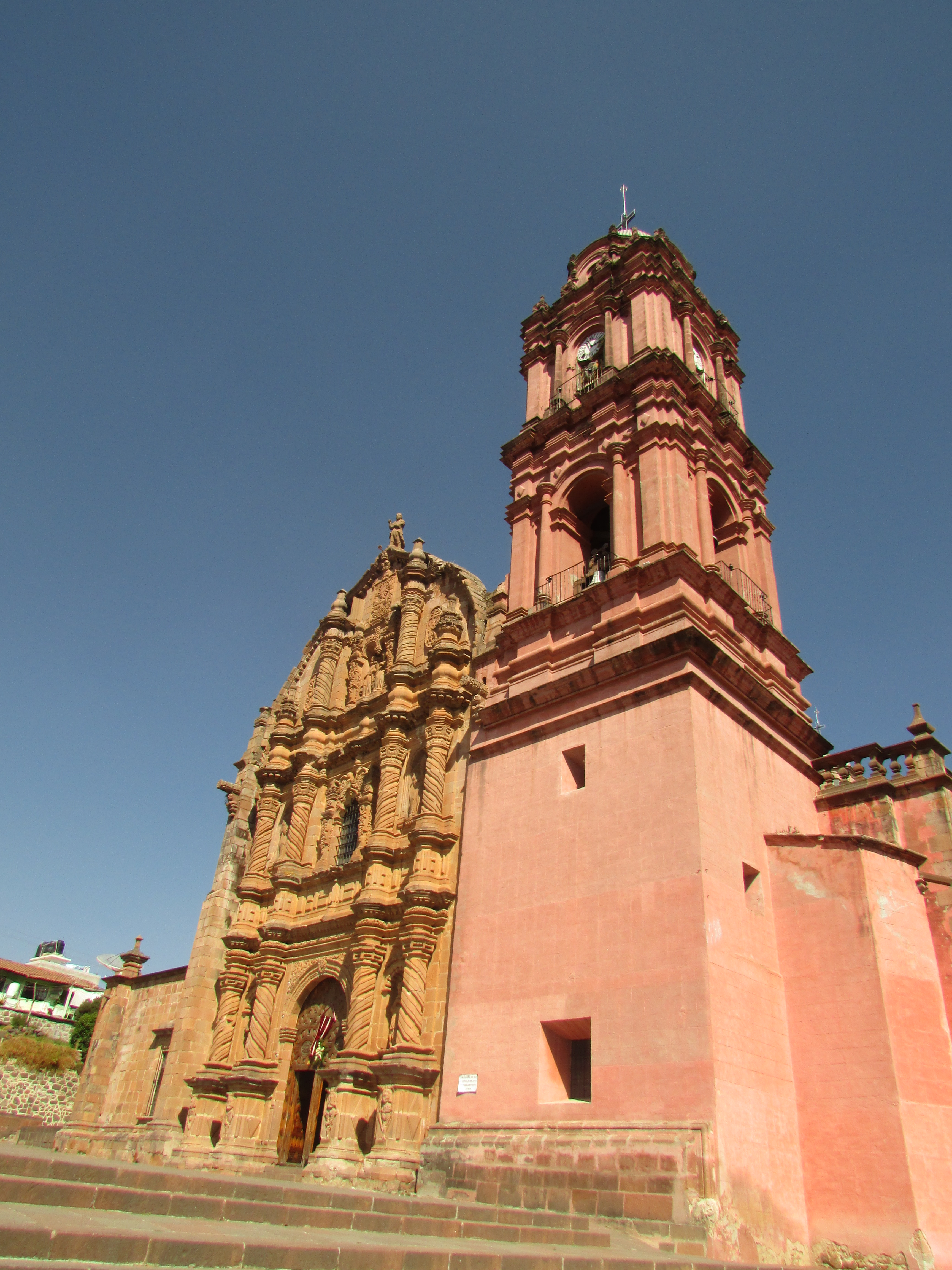 Su iglesia es otro atractivo por sí solo. Como se ha señalado, originalmente fungió como la parroquia del poblado, teniendo como patronos a los apóstoles Pedro y Pablo. El templo, se cuenta, surgió a iniciativa de los propios pobladores, puesto que el minero José de la Borda quiso construir esta iglesia, pero al no haber aceptado realizar alguna garantía, los mismos habitantes tomaron en sus manos esta labor. Hoy en día preside el altar mayor la imagen de la Virgen, antiguamente no fue así, habiendo algunas evidencias de parte del aspecto que tenía.