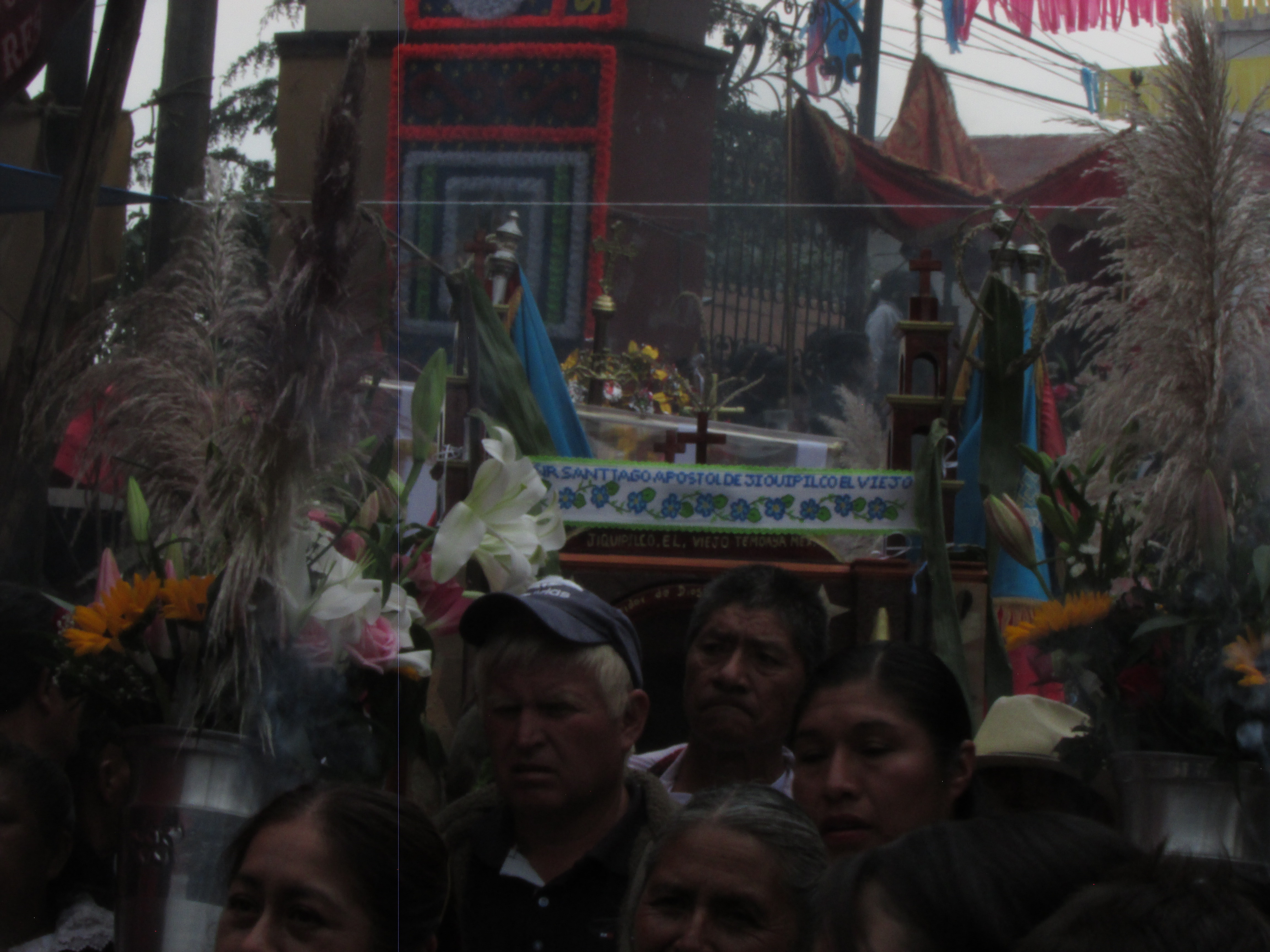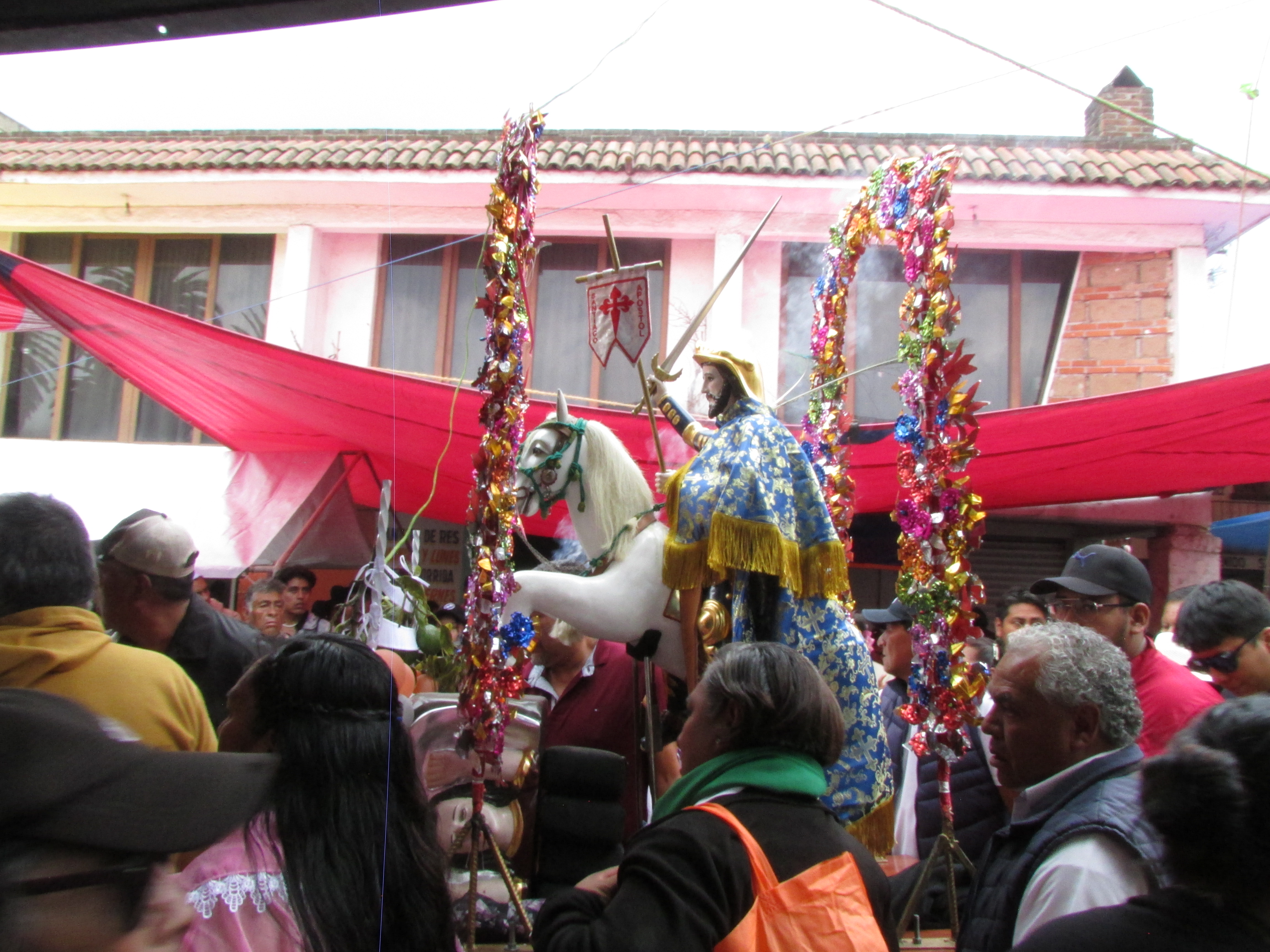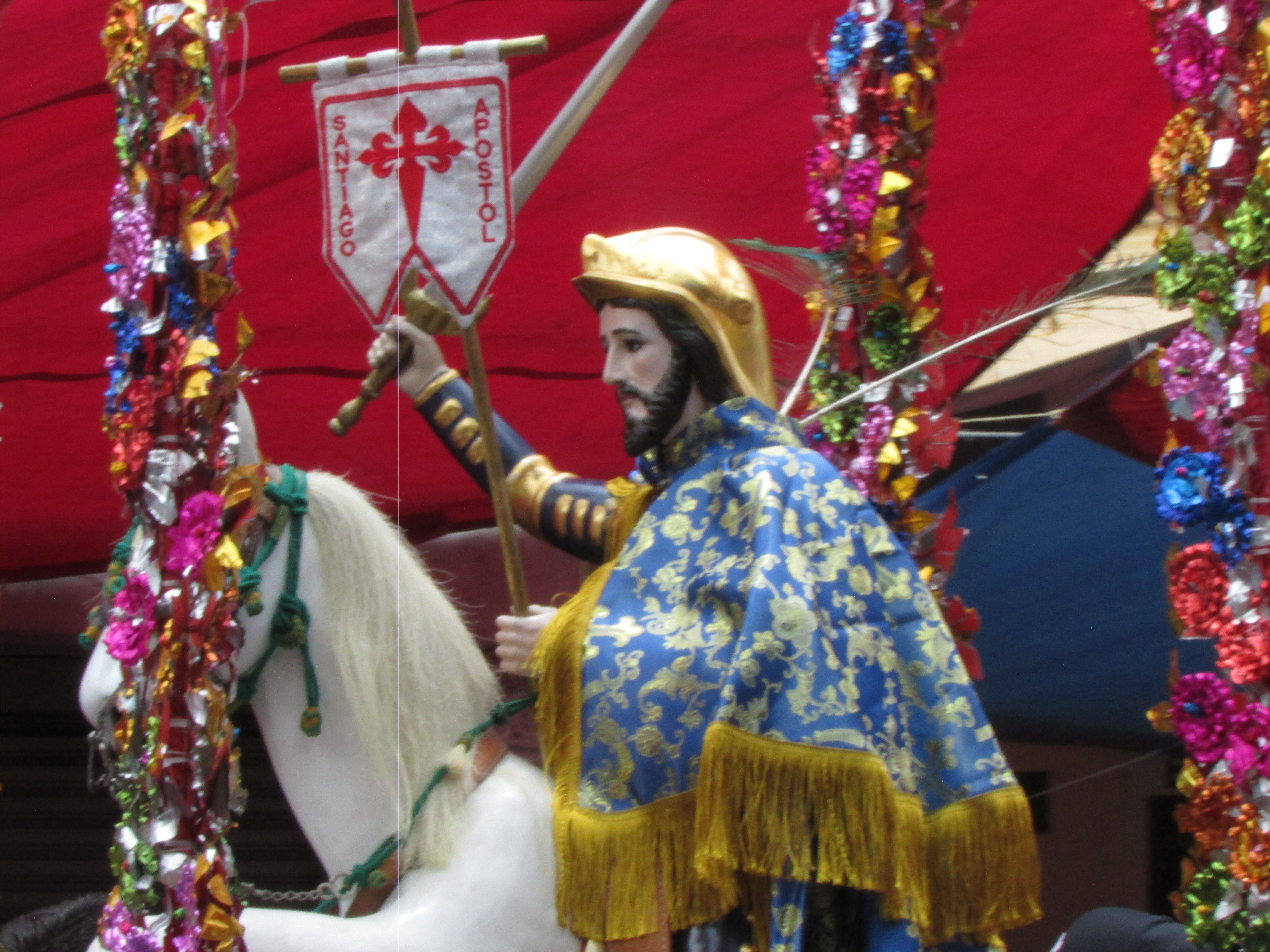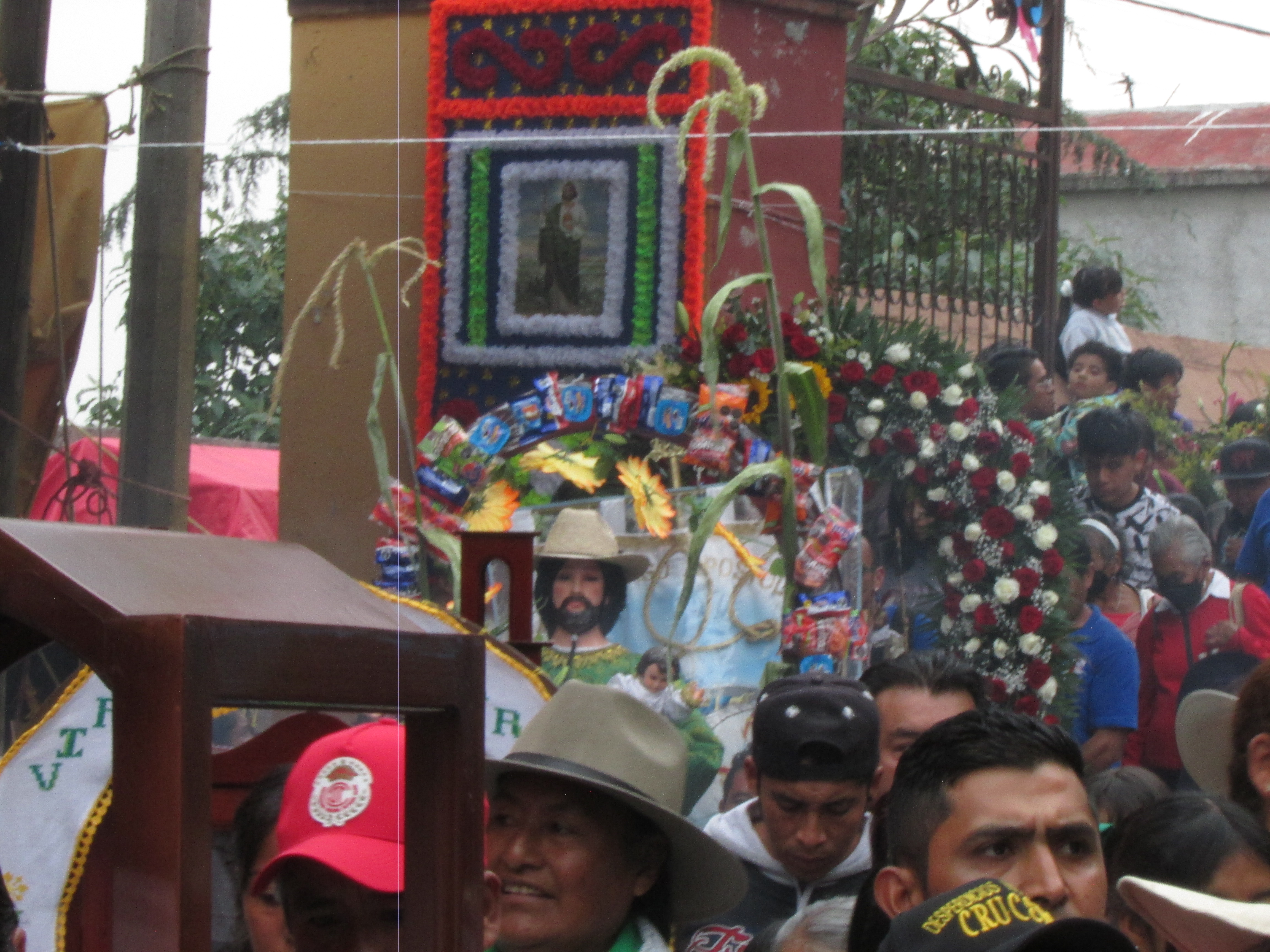 La fiesta del Señor Santiago reúne a todas las comunidades del municipio durante dos semanas a partir de la víspera de la fiesta titular. Desde temprano los vecinos de las comunidades salen en procesión desde sus iglesias para traer las imágenes de los santos patronos para visitar al Señor Santiago en su santuario. Cada comunidad trae en andas de madera, con sus nichos o altarcitos, a su santo patrono, vestido y adornado para la fiesta con flores, dulces, panes frutas, palomas de azúcar, cañas, etcétera. Los acompañan sus músicos con violín, guitarra y tambor.