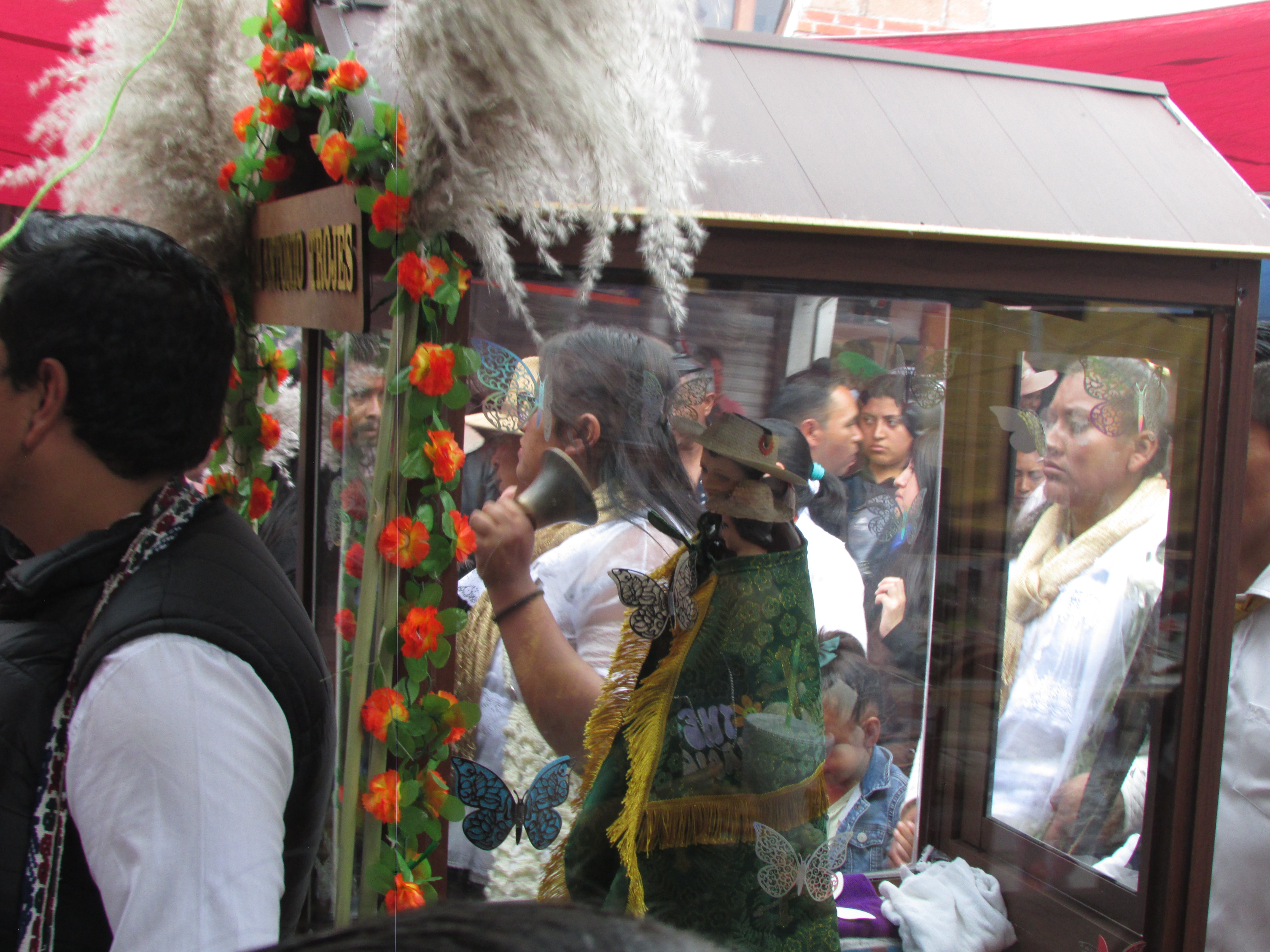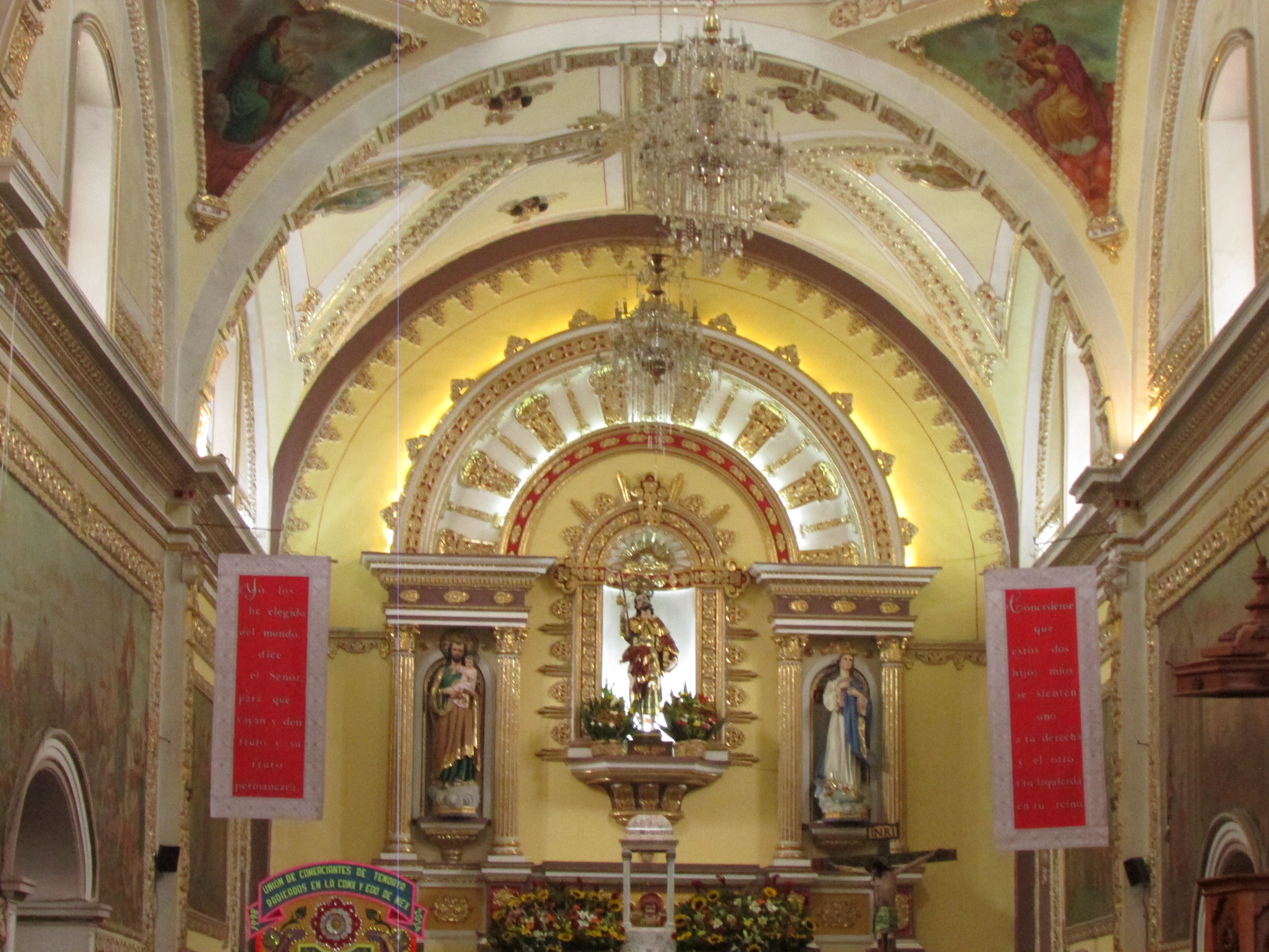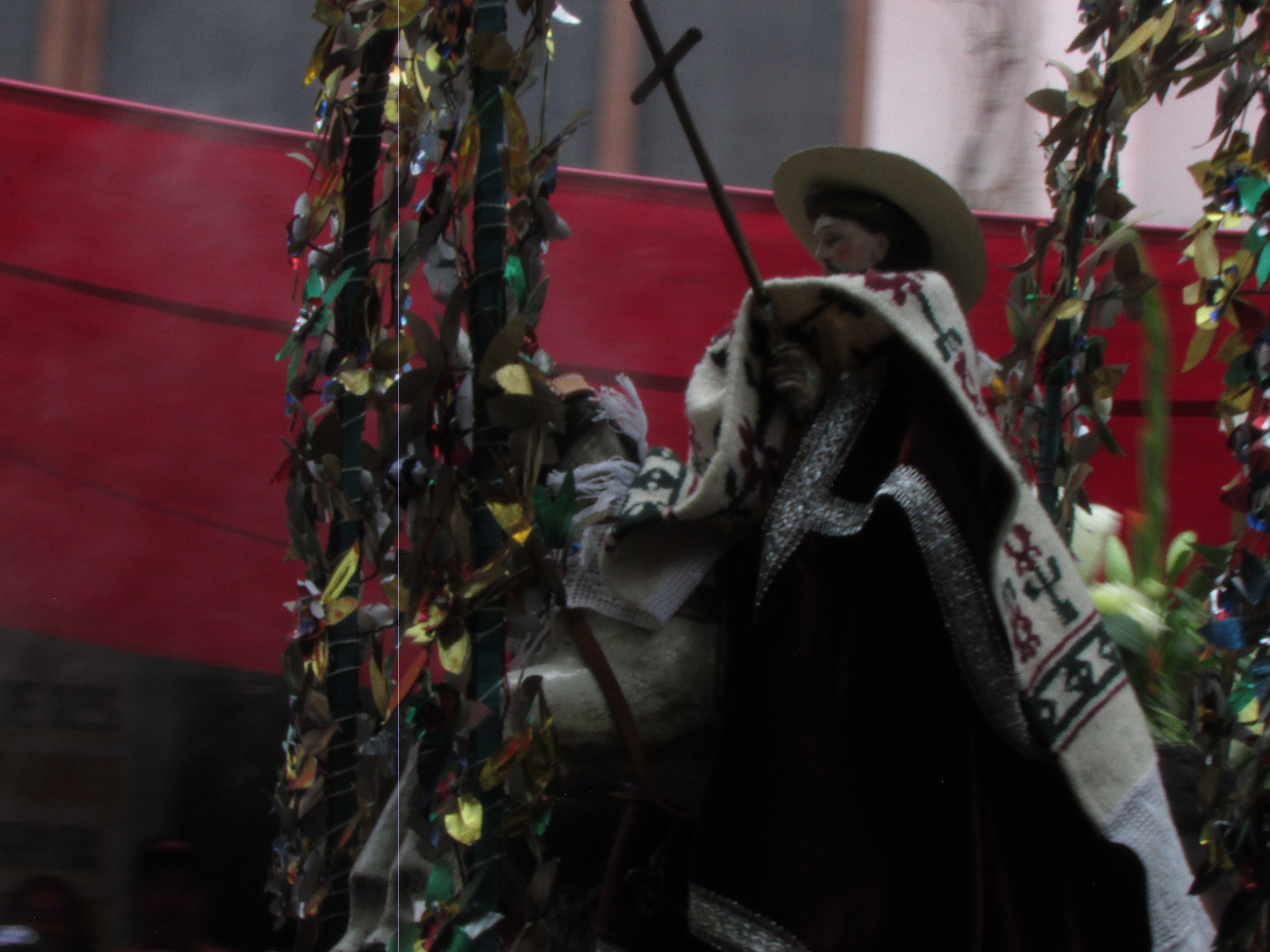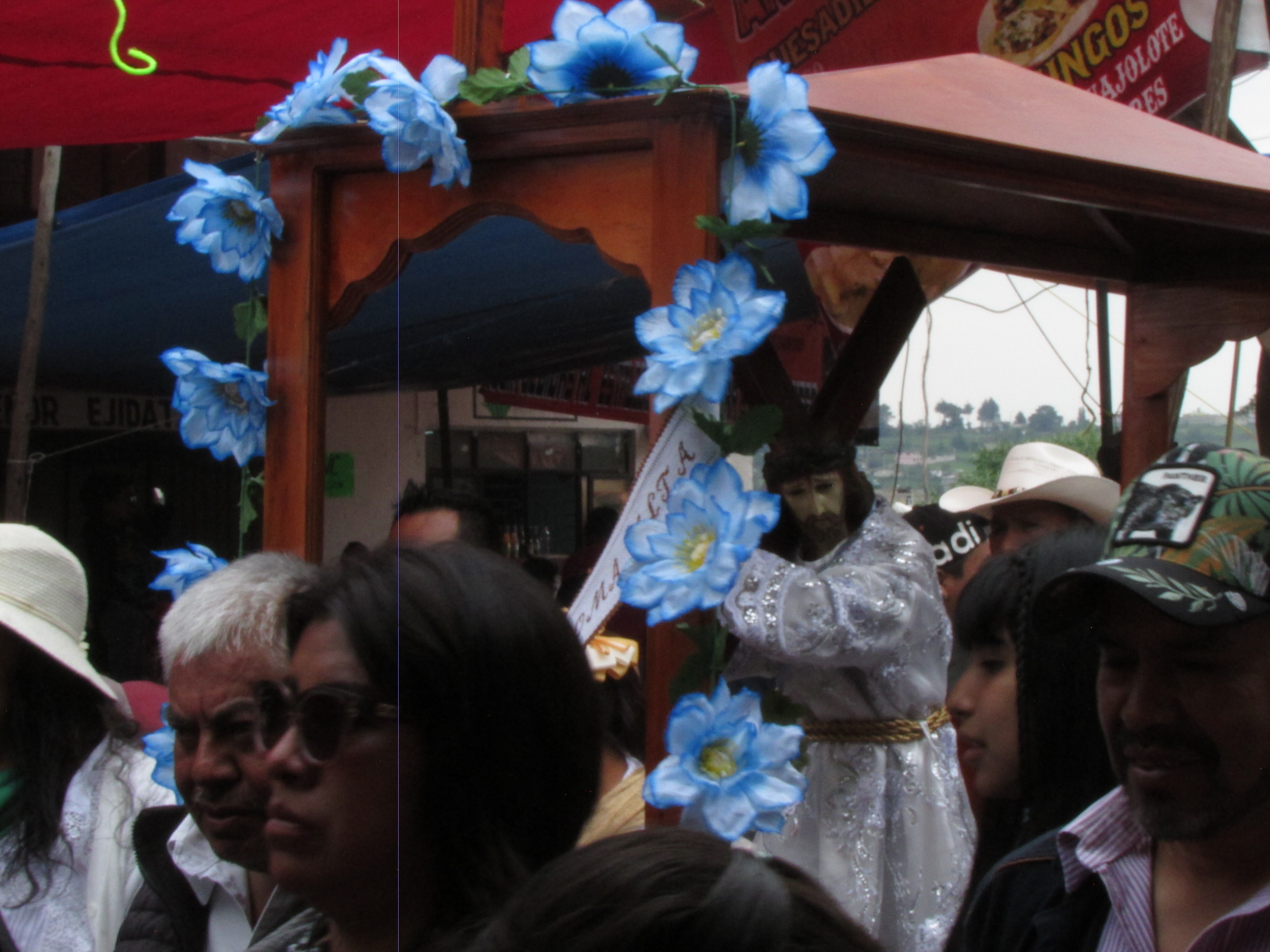 La fiesta del Señor Santiago reúne a todas las comunidades del municipio durante dos semanas a partir de la víspera de la fiesta titular. Desde temprano los vecinos de las comunidades salen en procesión desde sus iglesias para traer las imágenes de los santos patronos para visitar al Señor Santiago en su santuario. Cada comunidad trae en andas de madera, con sus nichos o altarcitos, a su santo patrono, vestido y adornado para la fiesta con flores, dulces, panes frutas, palomas de azúcar, cañas, etcétera. Los acompañan sus músicos con violín, guitarra y tambor.