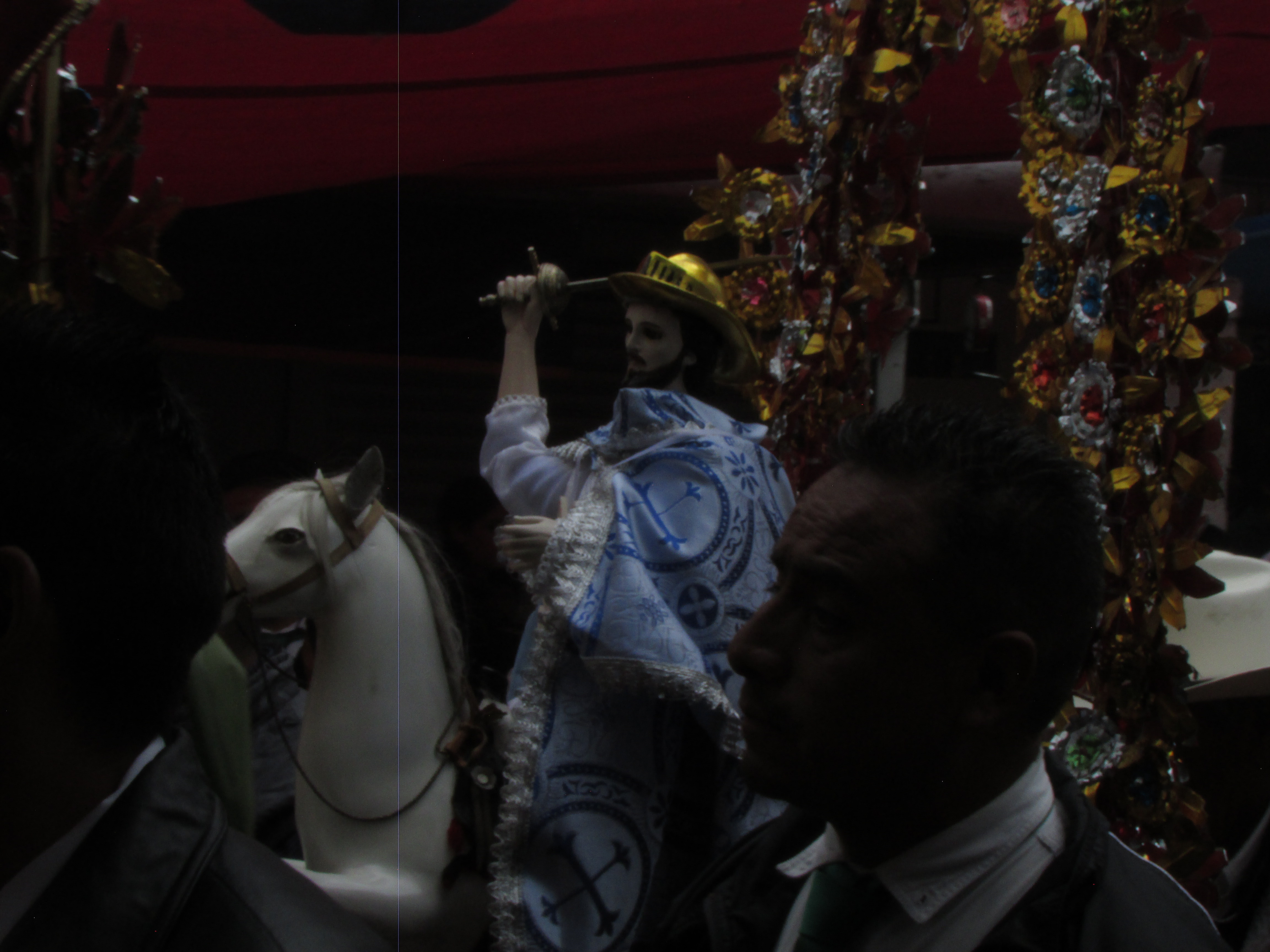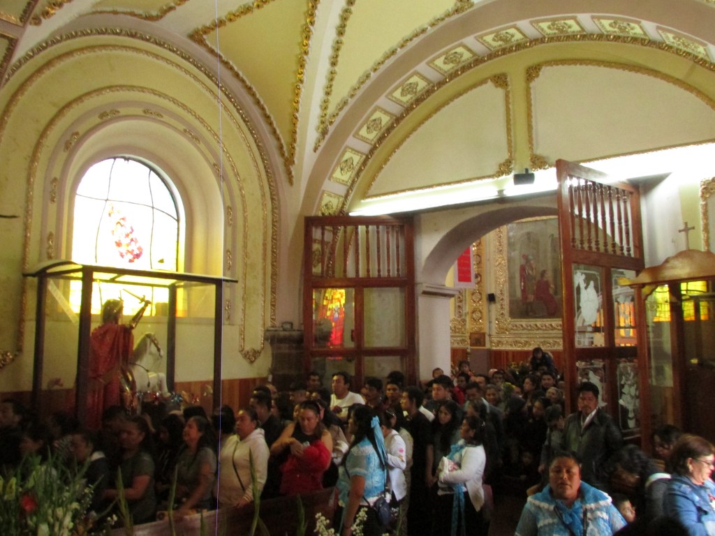 Las personas que no participan en la procesión aprovechan para saludar al Señor Santiago en su capilla. A lo largo del día desfilan miles de fieles procedentes de muchos lugares; gente de todas las edades, personas solas, parejas o familias completas con gran fe se arrodillan, se persignan, rezan una breve oración, agradecen el favor recibido o imploran su auxilio, le platican sus penas, solicitan su protección, dejan su limosna y le acomodan algún milagro de plata. La devoción es tan grande que muchos fieles hacen fila y esperan su turno para ver, tocar u besar la imagen del Señor Santiago.