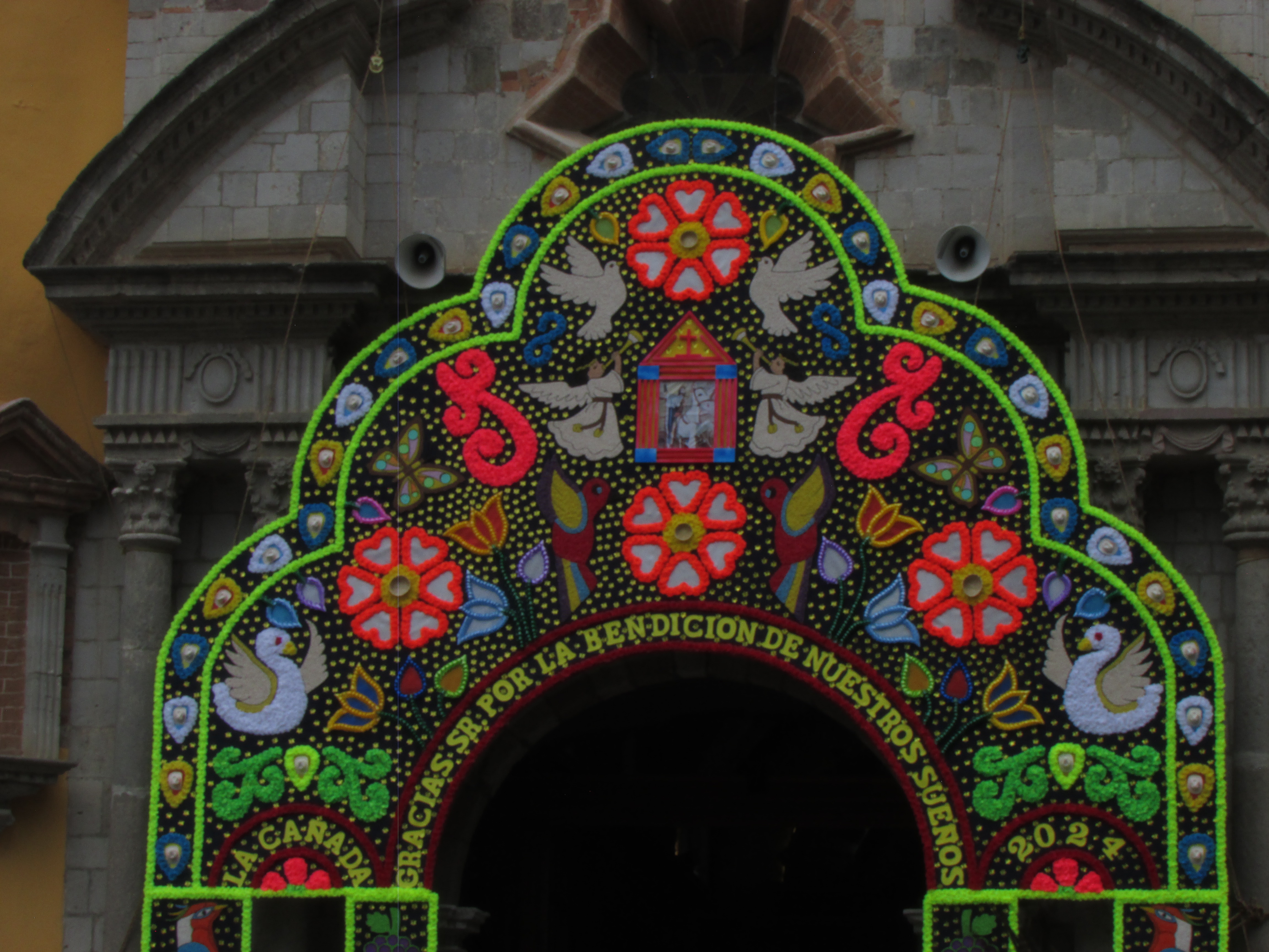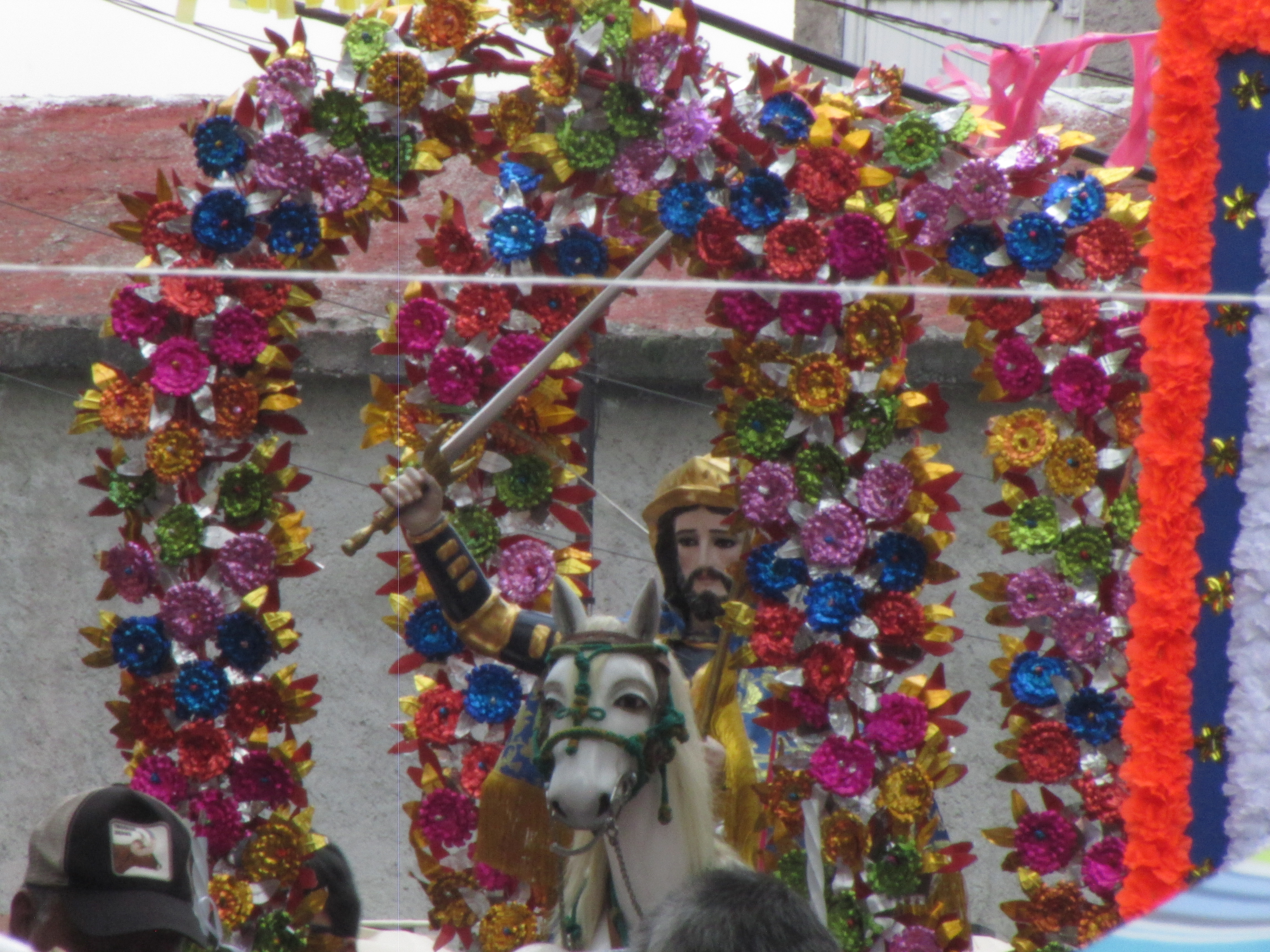 Cuando el día 25 cae entre semana, la fiesta principal se celebra el siguiente domingo. Las celebraciones abarcan aproximadamente dos semanas; el templo se engalana con flores y el acceso principal se cubre con una portada floral que dona la comunidad de La Cañada. El recinto alberga las imágenes de los santos que vienen de visita y el atrio es ocupado por diversos grupos de danzantes que cumplen alguna promesa ofrecida al santo patrón.