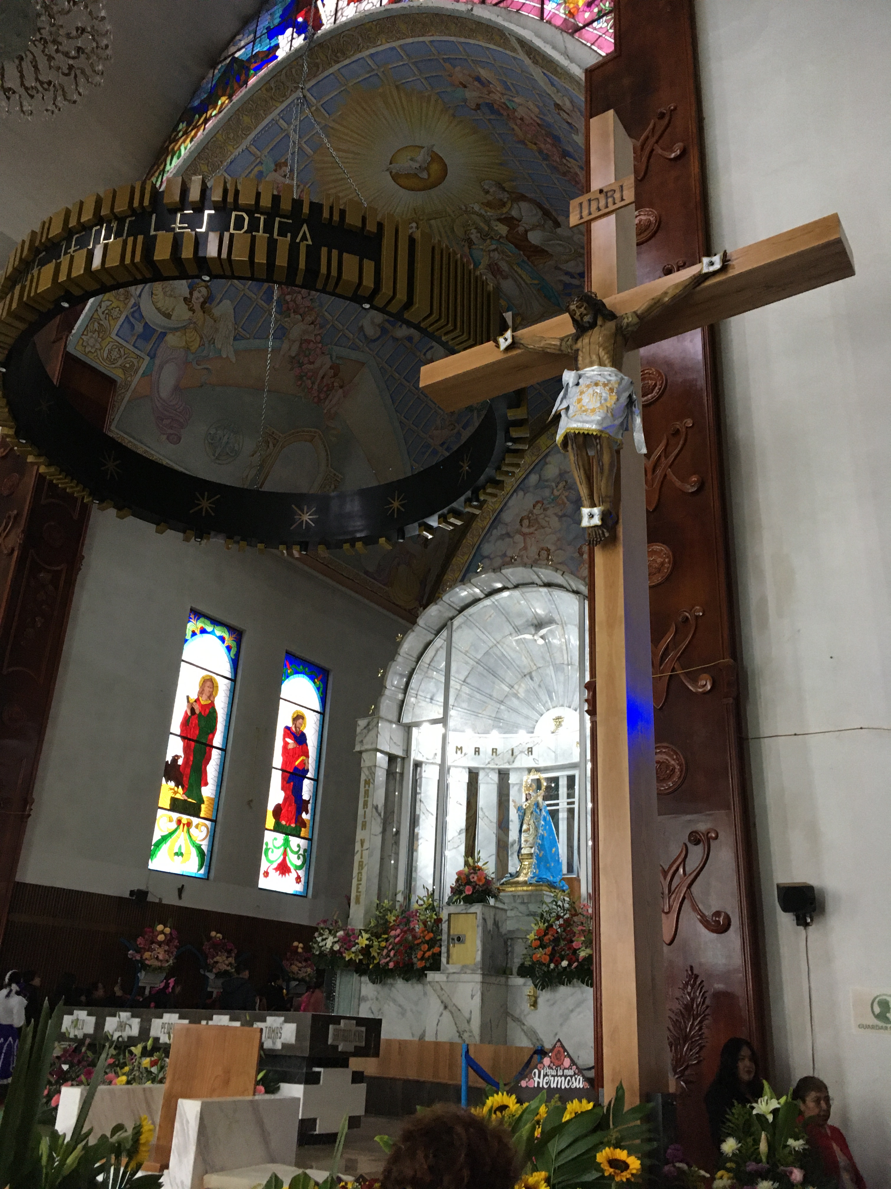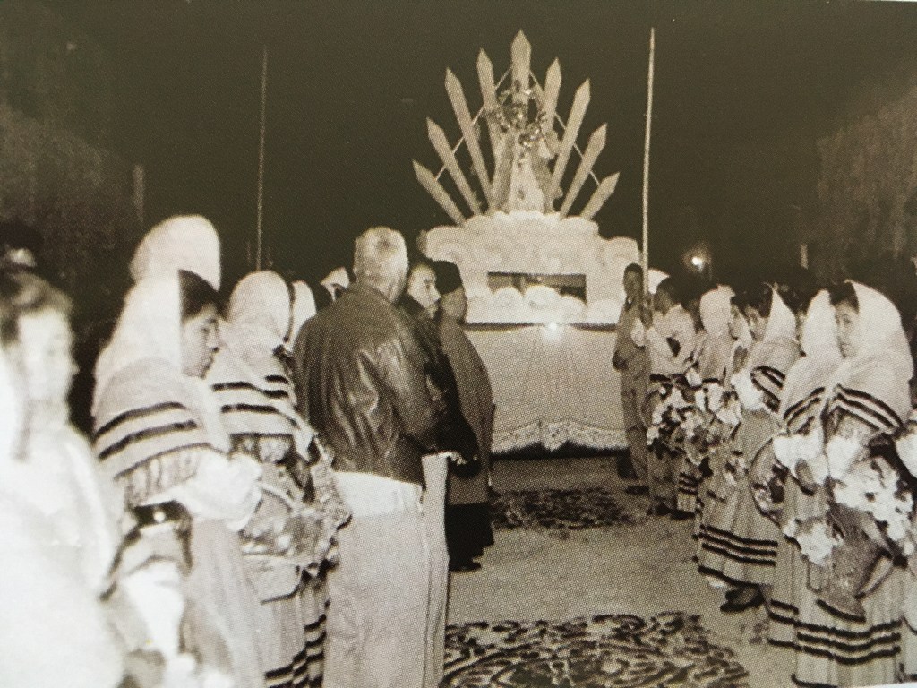 Sobre su festividad, existen algunos indicios desde comienzos del siglo XIX que hablan de la festividad, como el permiso para la realización de corridas de toros, así como su anuncio con el estallido de cohetones desde el día 14. Una versión oral, sin saberse exactamente la fecha, relata como una mujer, quien era devota de la virgen, llevaba flores del campo y las colocaba en el suelo de la iglesia de la Caridad, esparciendo los pétalos, inicialmente de forma aleatoria. Por varios años continuó con esta costumbre, aunque ahora separando las flores por color, en un intento de realizar algún diseño, tradición que posteriormente sería adoptada por otros habitantes, siendo esta la forma en que nacen las primitivas alfombras en honor de la imagen.
