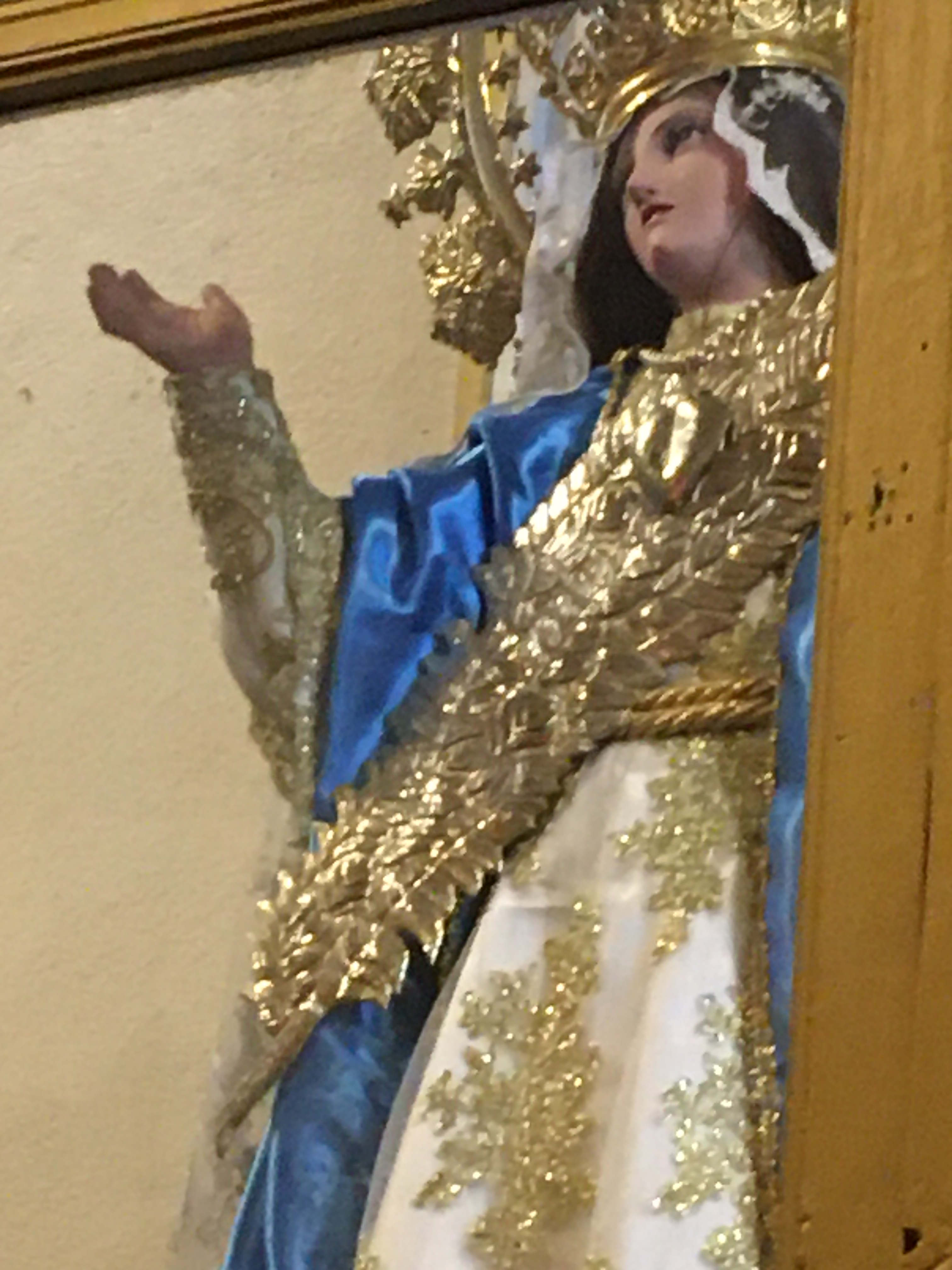 Hoy en día se trata de una obra bordada en hilos de oro, pedrería fina y otros recursos, que tienen como soporte telas de importación. La realización de esta prenda abarca meses de anticipación, cambiando el diseño y temática cada año. El día 13, en solemne ceremonia, la imagen es descendida de su altar para ser ataviada con las nuevas prendas que lucirá desde la fiesta y hasta el siguiente año.