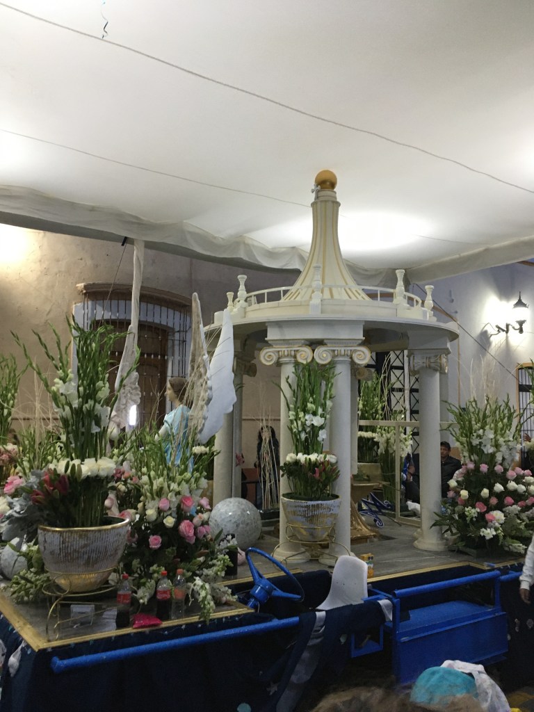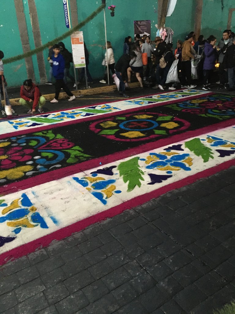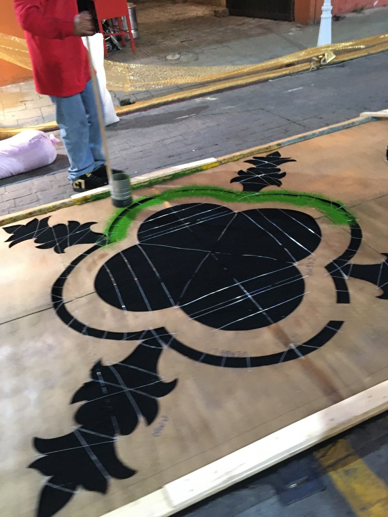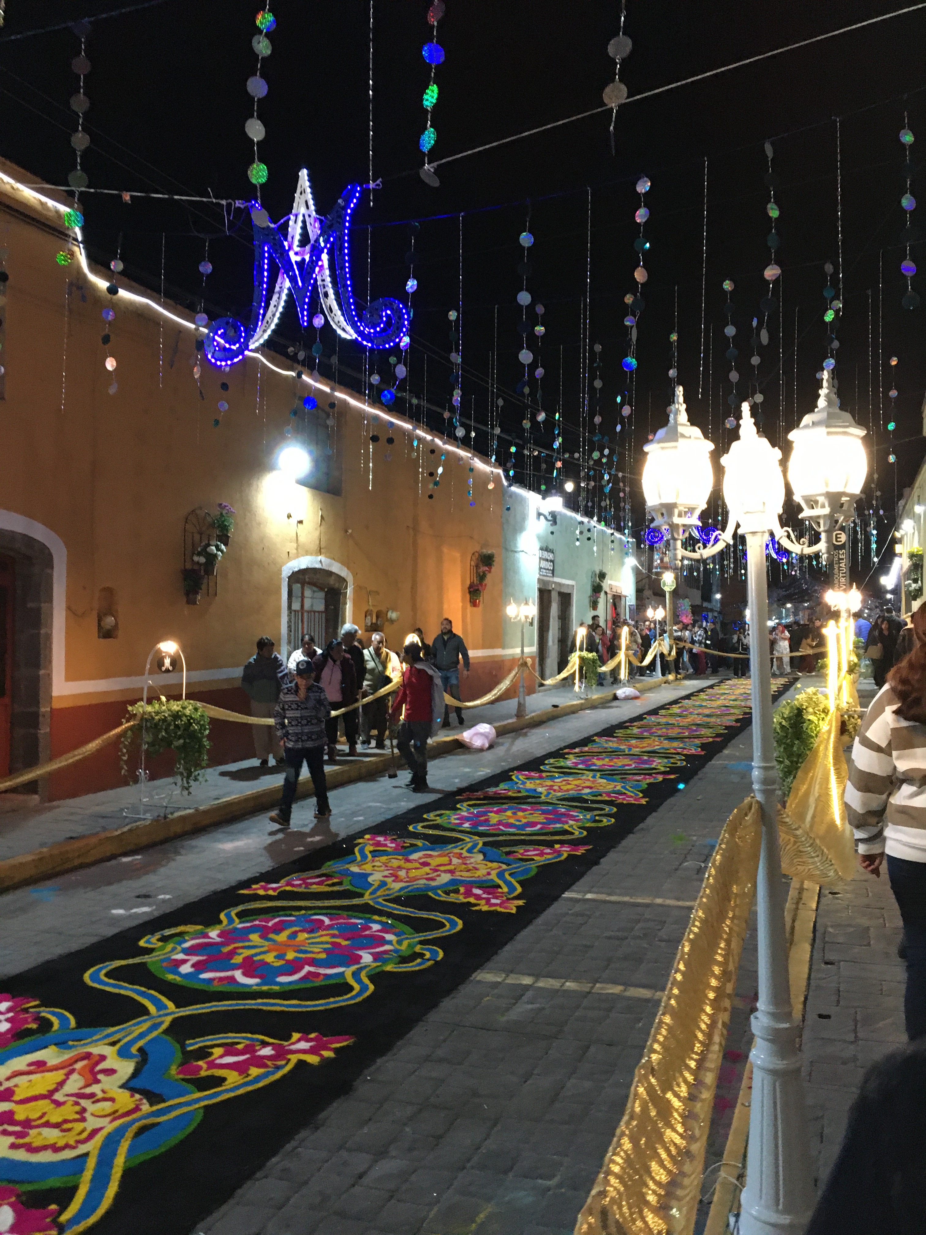 La mayor labor se ejecuta en las primeras calles donde discurre la procesión, pues todavía a las tres de la mañana es posible ver a los vecinos de otras calles elaborar los tapetes, a pesar de ya haber salido la procesión desde instantes previos, evidentemente estas serán las últimas calles en que avanzará el cortejo. Por último, no se puede pasar por alto la ofrenda musical que ofrece en la plaza de armas el artista Carlos Rivera, originario de Huamantla, quien encabeza otro de los grandes momentos esperados por propios y extraños.