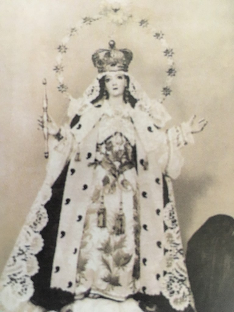 Pocos años antes, en 1964, se inicia la tradición de confeccionar un vestido para la imagen, pues por aquella época solo contaba con dos vestidos, los cuales debido a su antigüedad mostraban deterioro. Fue así como Carolina Hernández inicia por primera ocasión esta labor, que sería continuada por diversas personas hasta llegar a la actual comisión que se encarga de su realización.